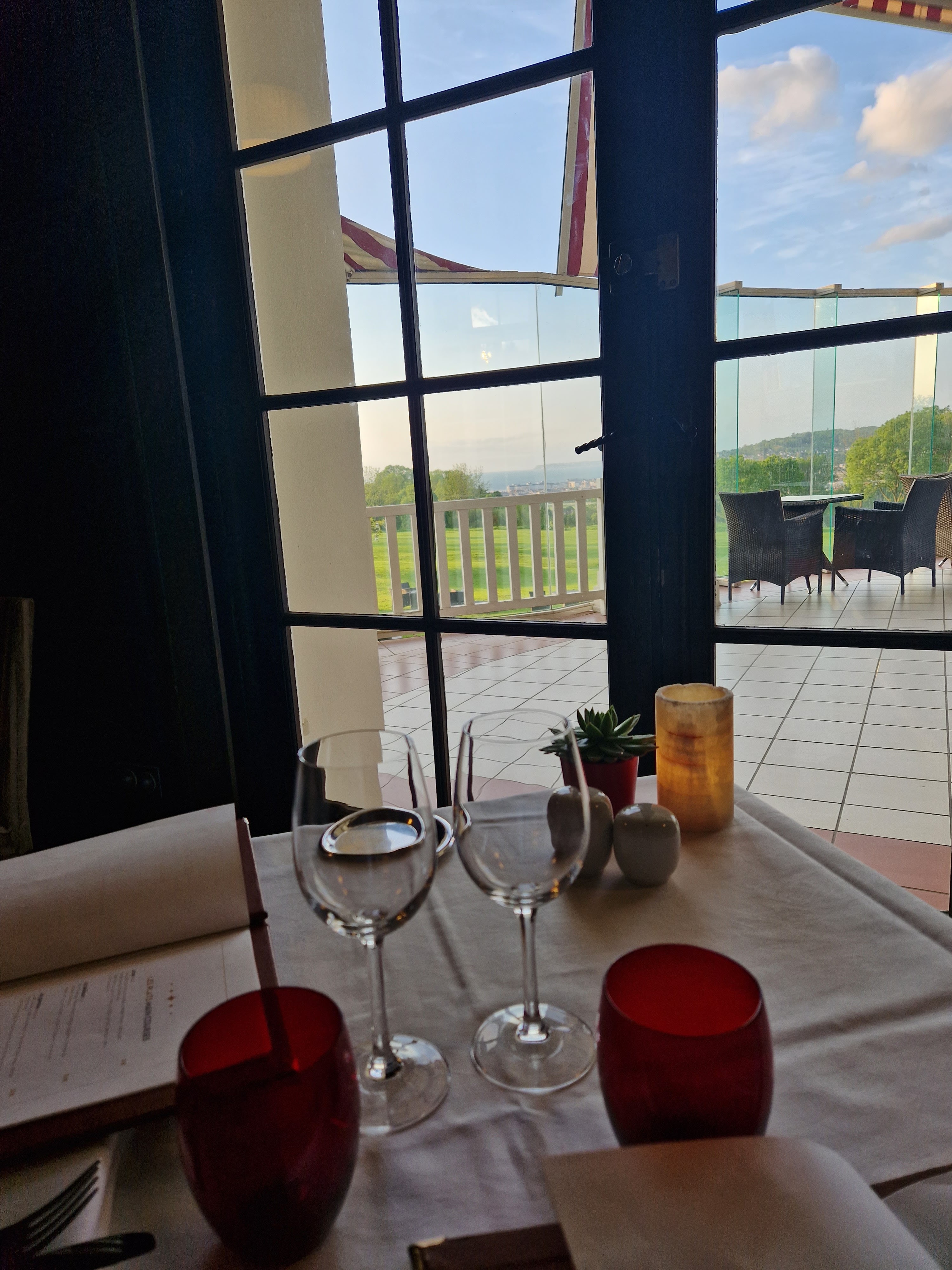Le lieu est parfaitement situé et offre une vue imprenable sur la baie et le 18ème trou du golf. Le service est courtois et souriant mais pas vraiment en adéquations avec les plats proposés. Pour rejoindre d'autres avis, les mets servis sont très bons mais ne propose aucune originalité ou folie dans leur confection ne pouvant justifier les prix affichés à la carte. De ce fait, le standing du service colle difficilement à l'image souhaitée par l'établissement.