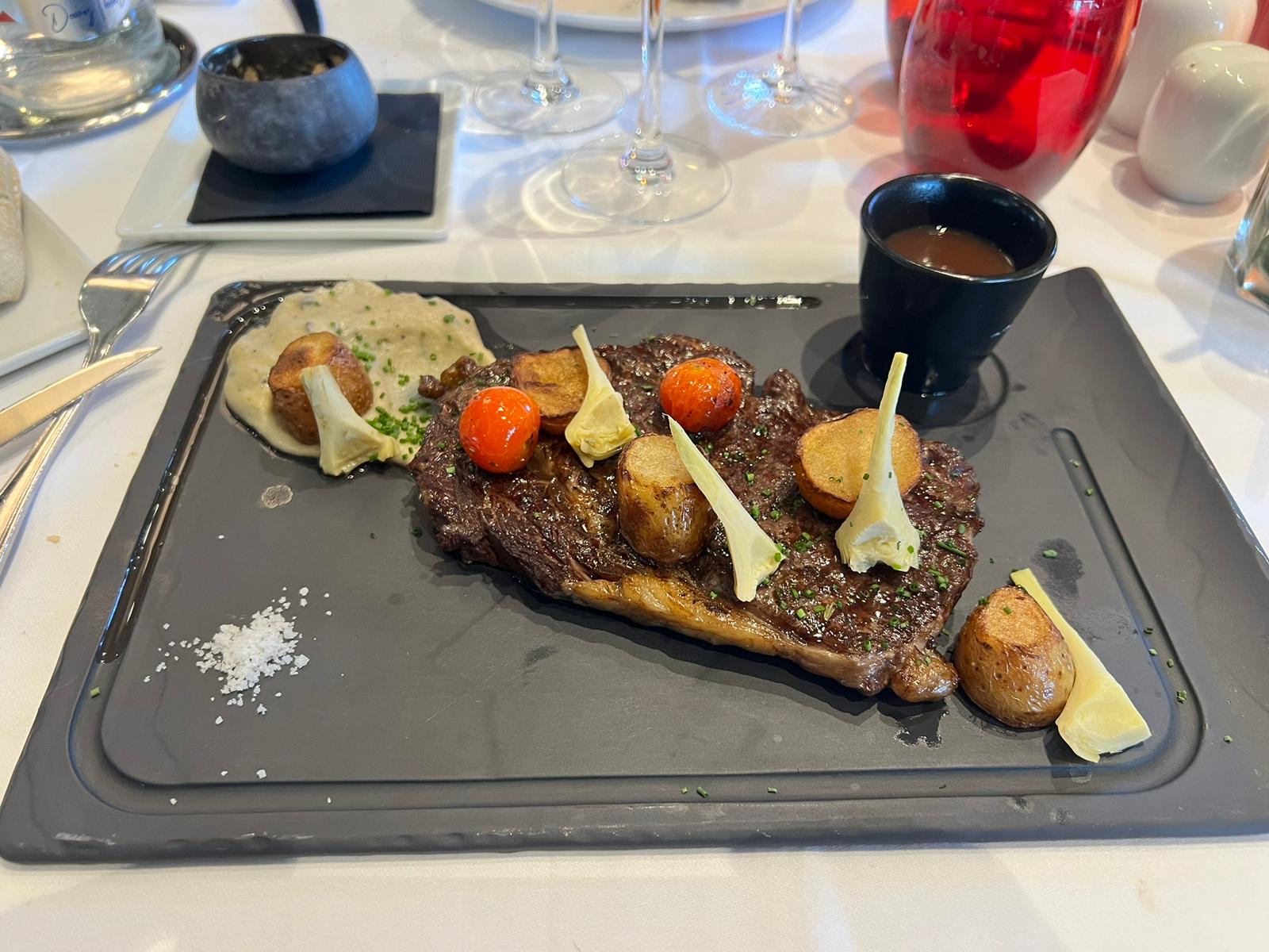 Acceuil au top. Pris en charge par l assistant maître d hôtel puis service parfaitement suivi par le chef de rang. Très belle Entrecôte .( frites à revoir) , dessert au top. Le cadre est classe avec une vue sur la côte. Rapport qualité prix correct. Belle surprise. Nous reviendrons.
