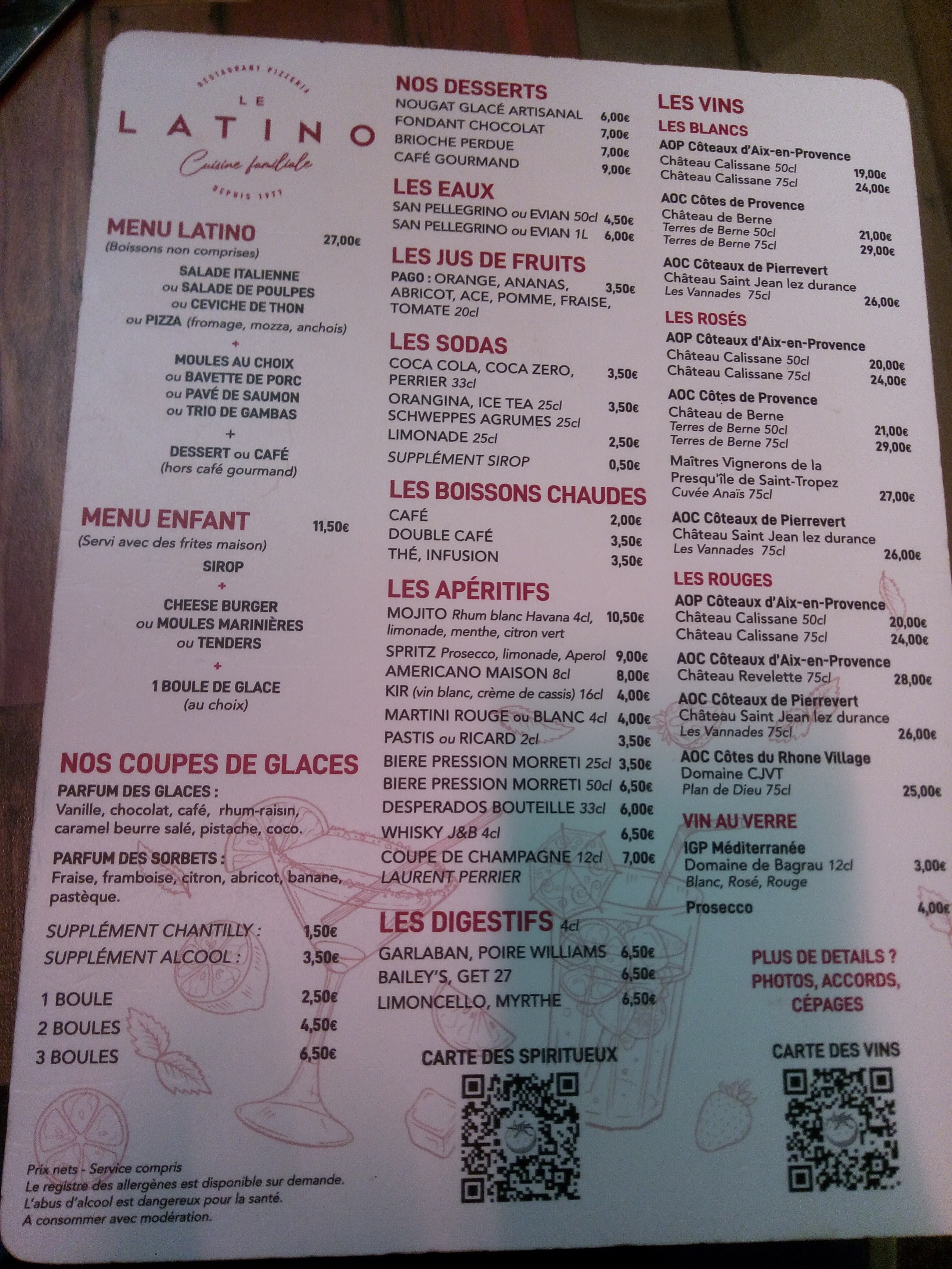 Cherchant un restaurant le long du port, nous avons découvert le Latino par hasard. Des prix corrects pour des repas copieux et très bons. En plus de cela, l’accueil fut au-delà de nos attentes avec une tournée offert par le restaurant en guise de fin de repas. Un immense merci pour votre accueil et votre générosité !