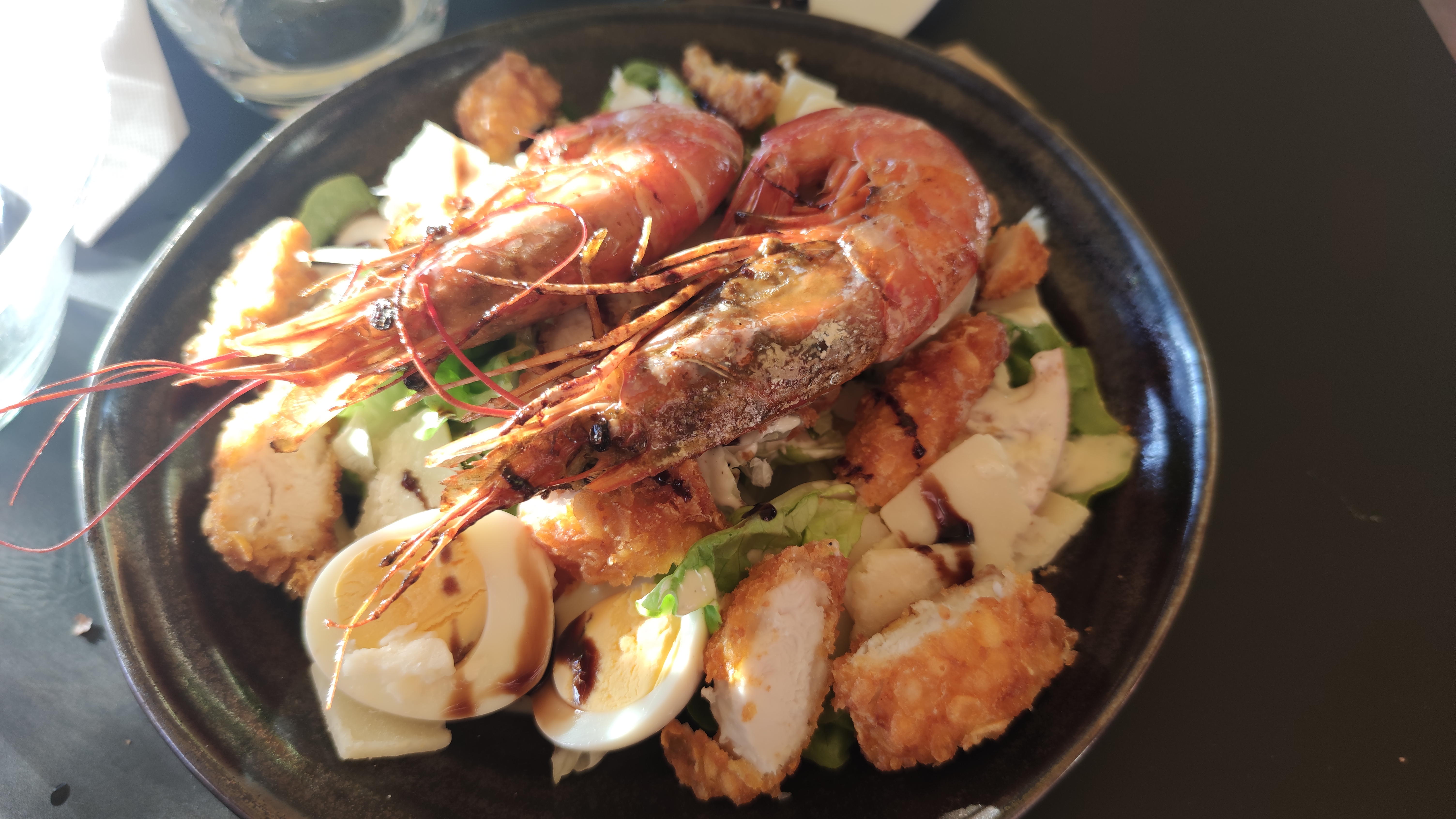 Venue ce midi pour manger, nous avons pris une pizza à l'apéritif qui était très bonne. Parillada de la mer décevante, et ne parlons pas de la salade césar au prix de 22€ pour manger des bouts de poulet reconstitués panés, on aurait dit des bouts de mauvais nuggets coupé.. mais pour justifier le prix ils rajoutent 2 gambas qui n'ont rien à faire dans une salade césar...