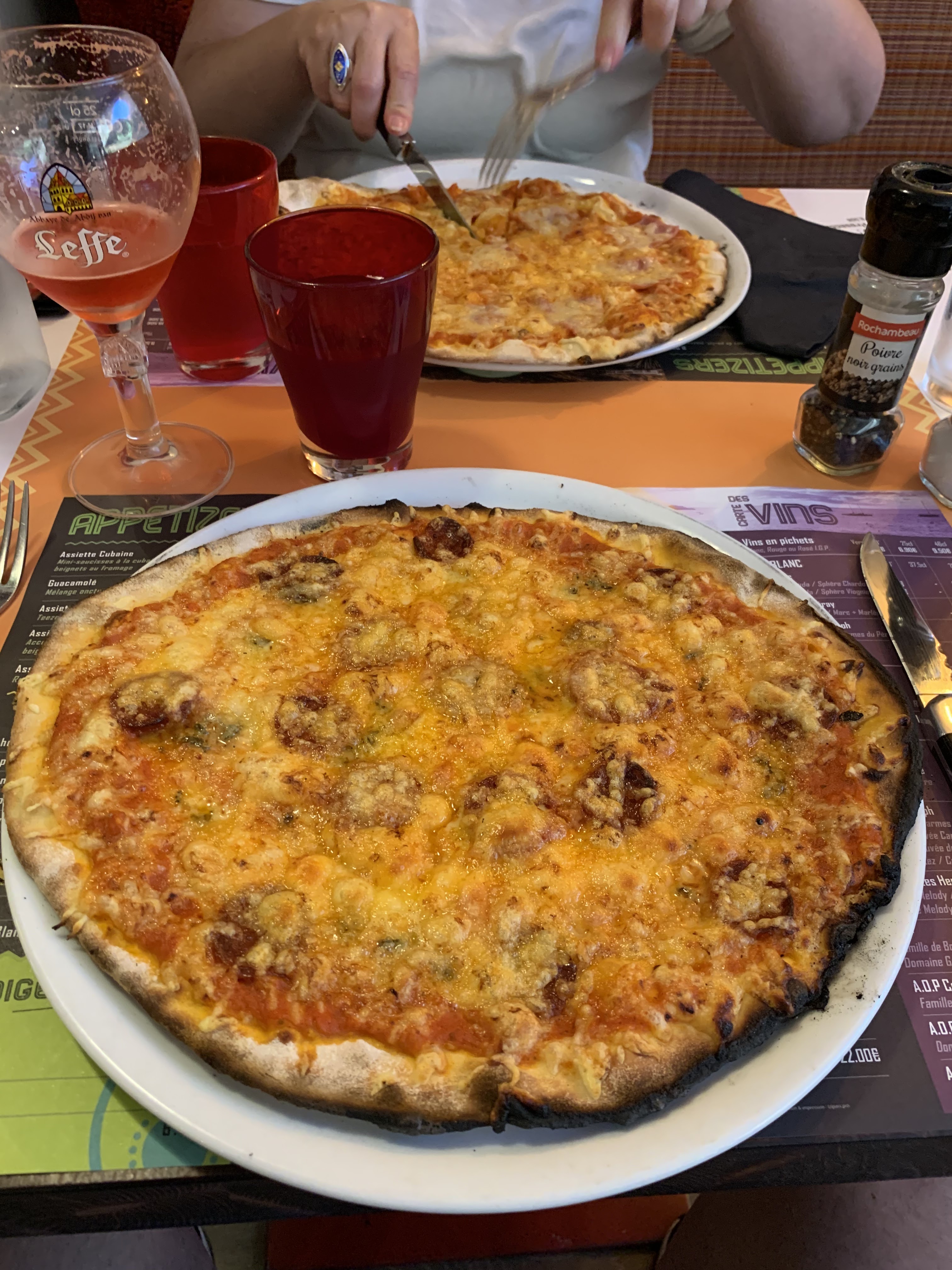 Nous n'avons pas aimé nos pizzas, pâte trop fine (type tarte flambée), la tomate n'est qu'un coulis pas une sau tomate.
