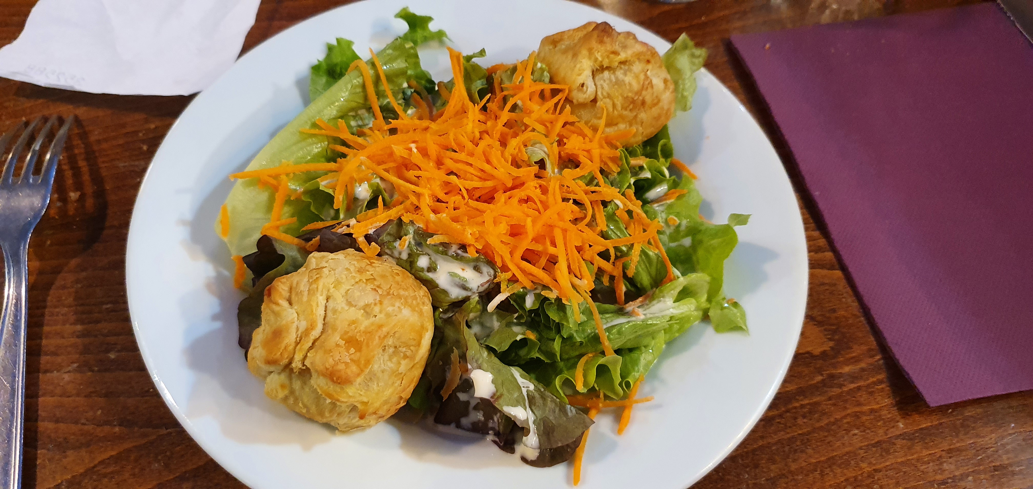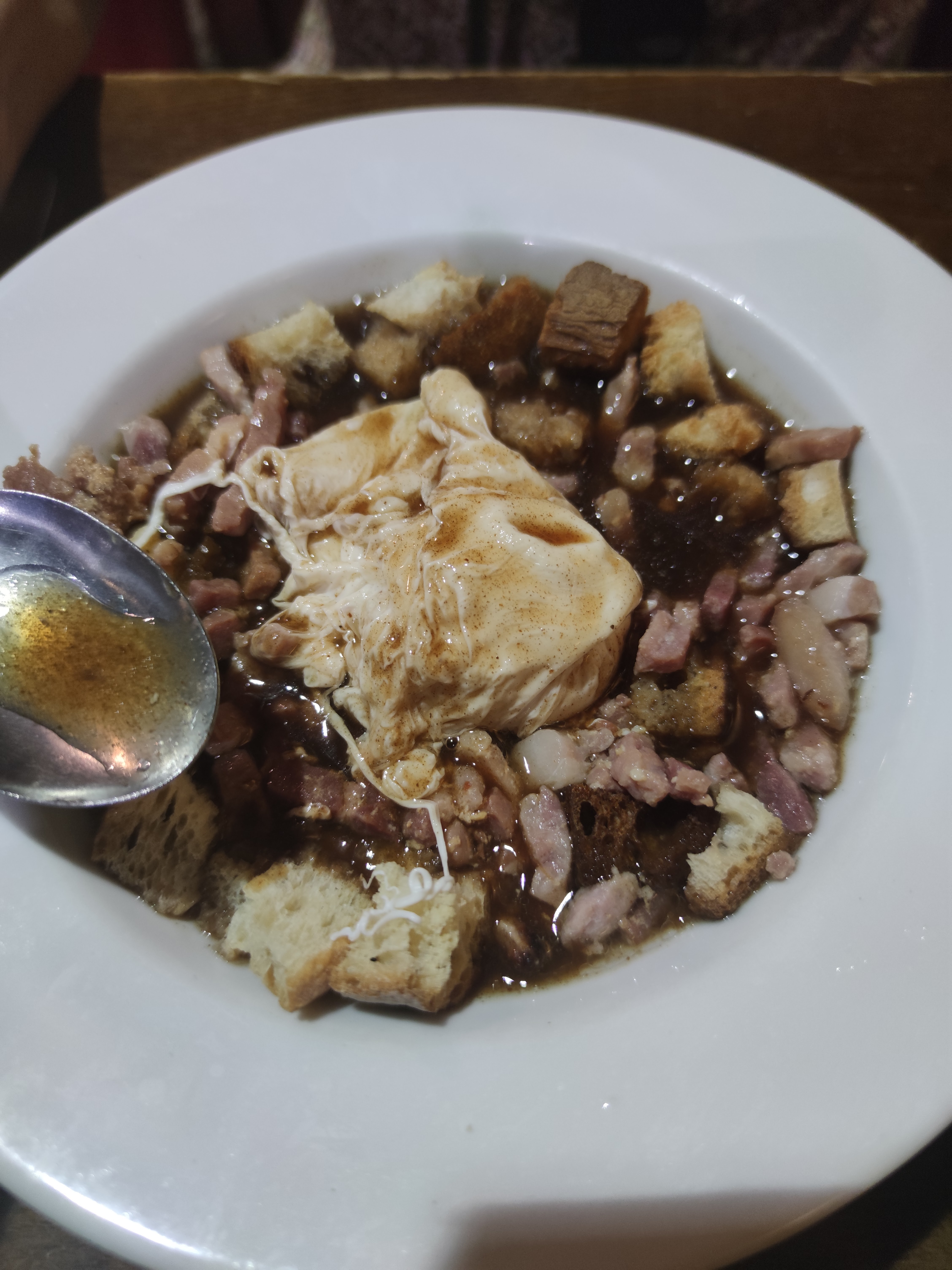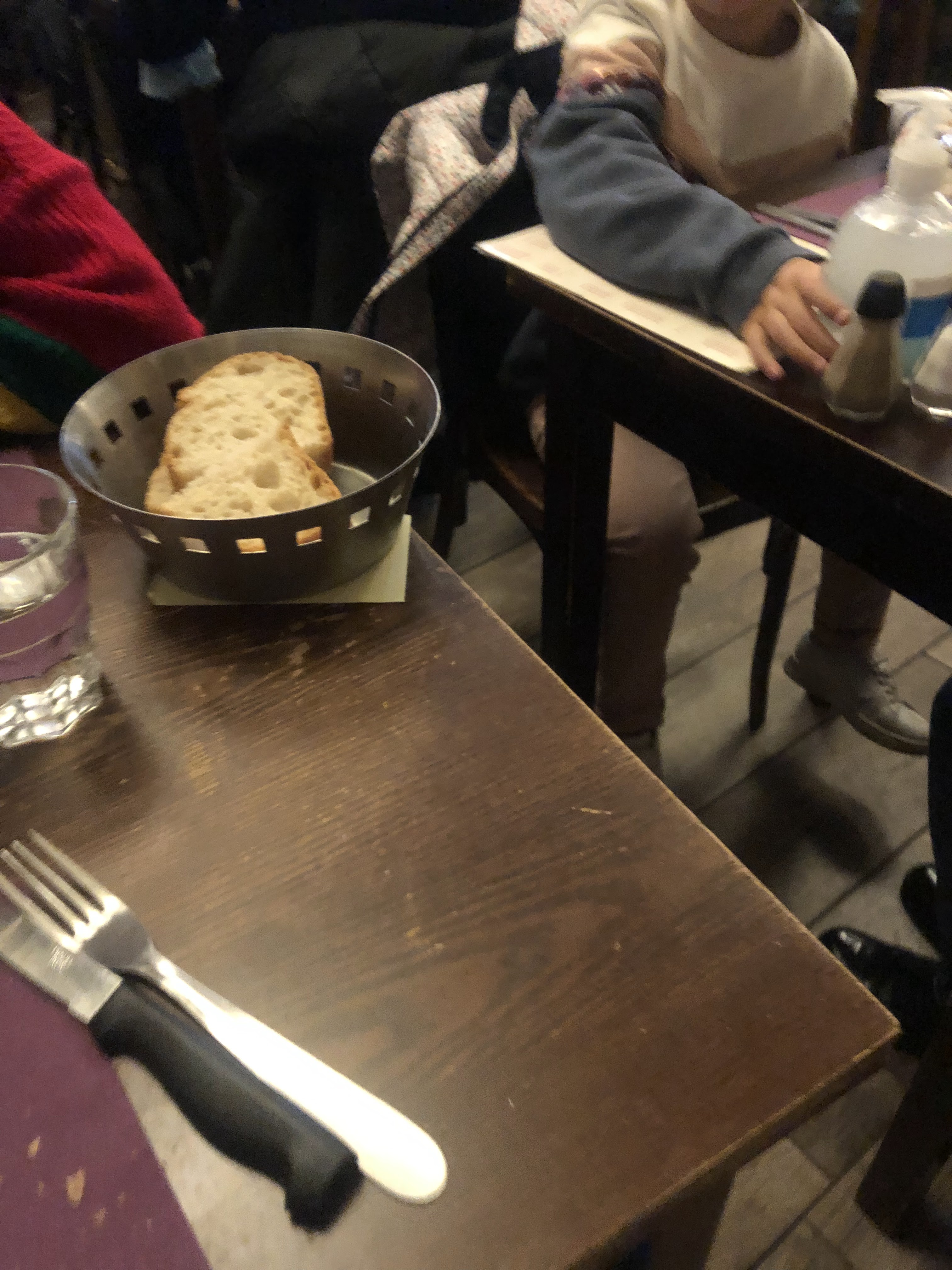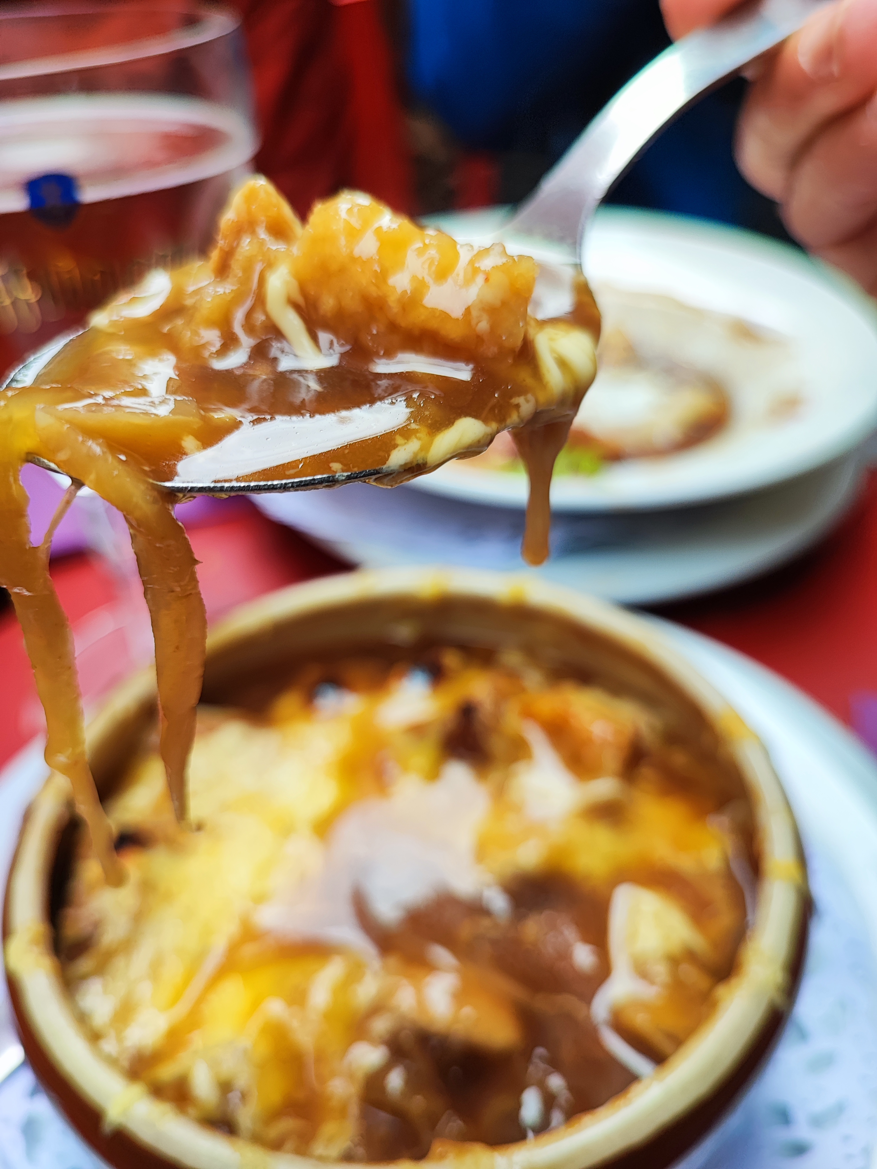 La gratinée aux oignons est délicieuse, mais la salade n'était pas fraîche. La salle est petite, ce qui rend la circulation difficile et il y a peu de place pour les grandes jambes.