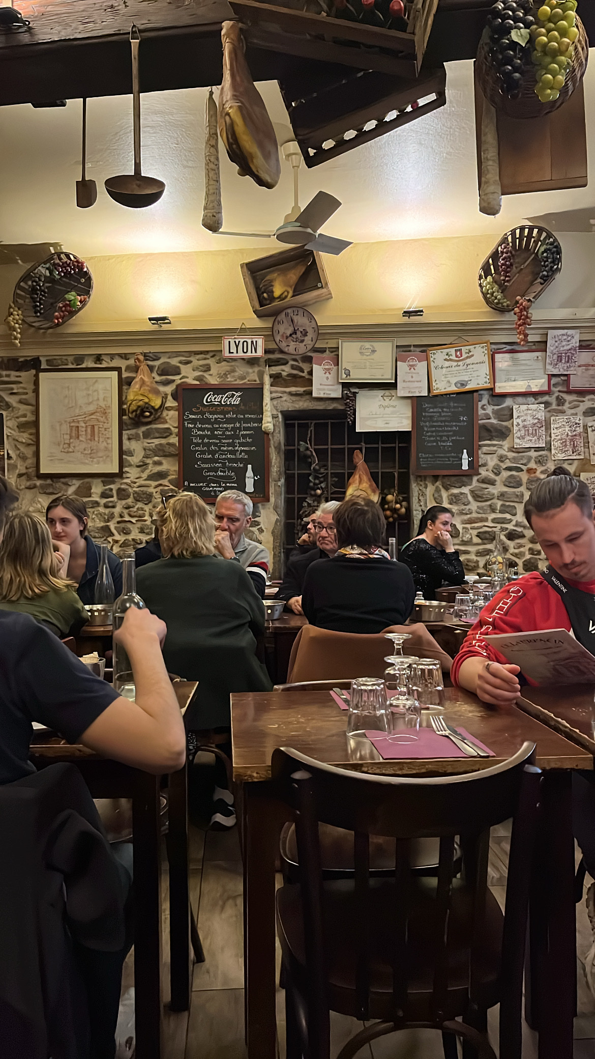 Restaurant bien situé dans le vieux Lyon, dans une petite rue médiévale. Le service, même que cordiale, était assez lent.. on a attendu plus de 10 minutes pour avoir le menu alors que le restaurant était quasiment vide. La nourriture était correcte. Des plats typiques servis de façon simple, accompagné de pain. Niveau goût j’ai trouvé que c’était “ok”. De manière générale, bon rapport prix-qualité- quantité. C’est bien pour un petit budget si on veut manger des plats typique de la ville/région.