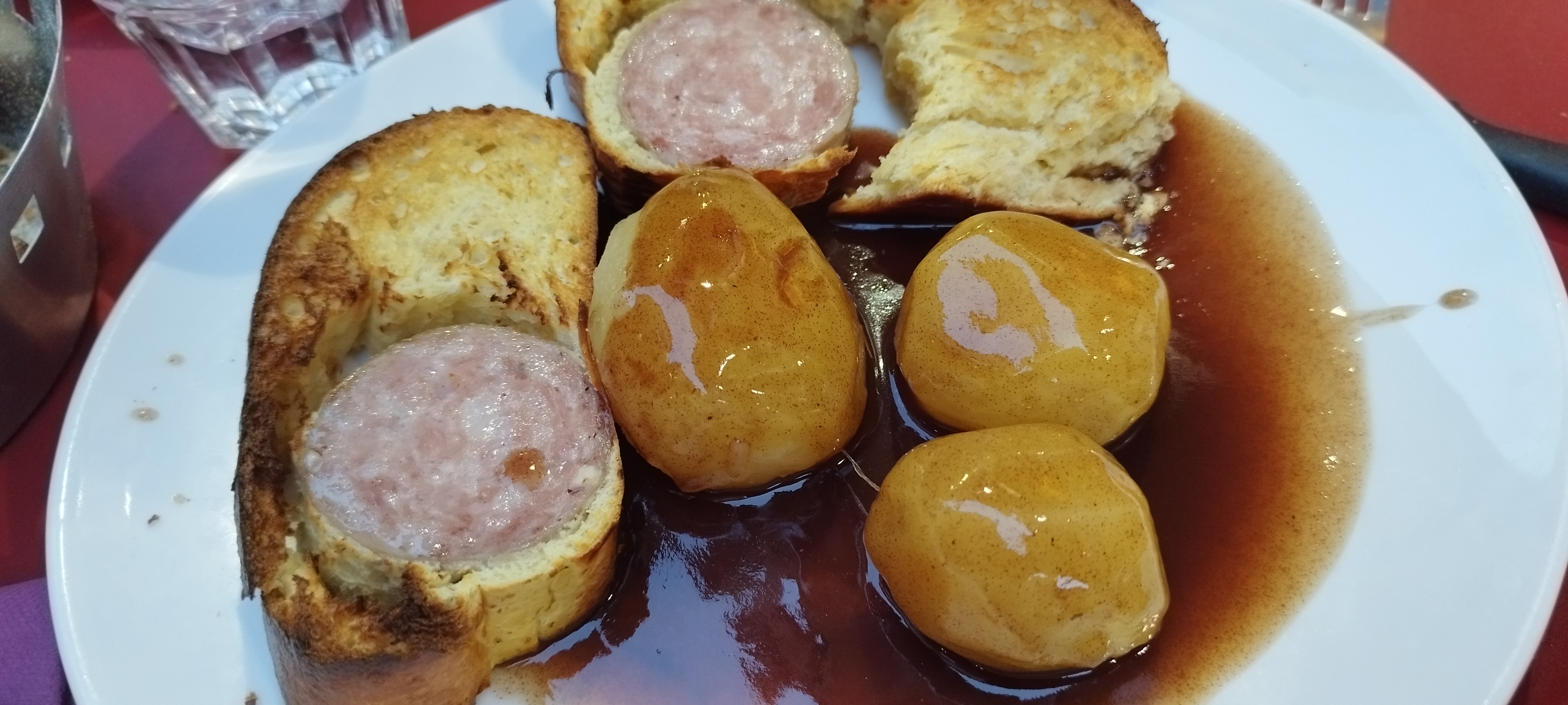 Juste mauvais. J'entends que nous sommes dans un quartier touristique, que le prix n'est pas élevé. Mais c'est juste irrespectueux de donner cette image de la gastronomie française aux touristes. Gras double noyé dans de la crème fraîche sans assaisonnement. La sauce du saucisson brioché avait le même goût que la soupe gratinée à l'oignon (Merci Maggy). Tristesse de la tarte à la praline sans gout de praline.... Étonnée par la note générale et triste pour les prochains qui payeront pour ne rien terminer.