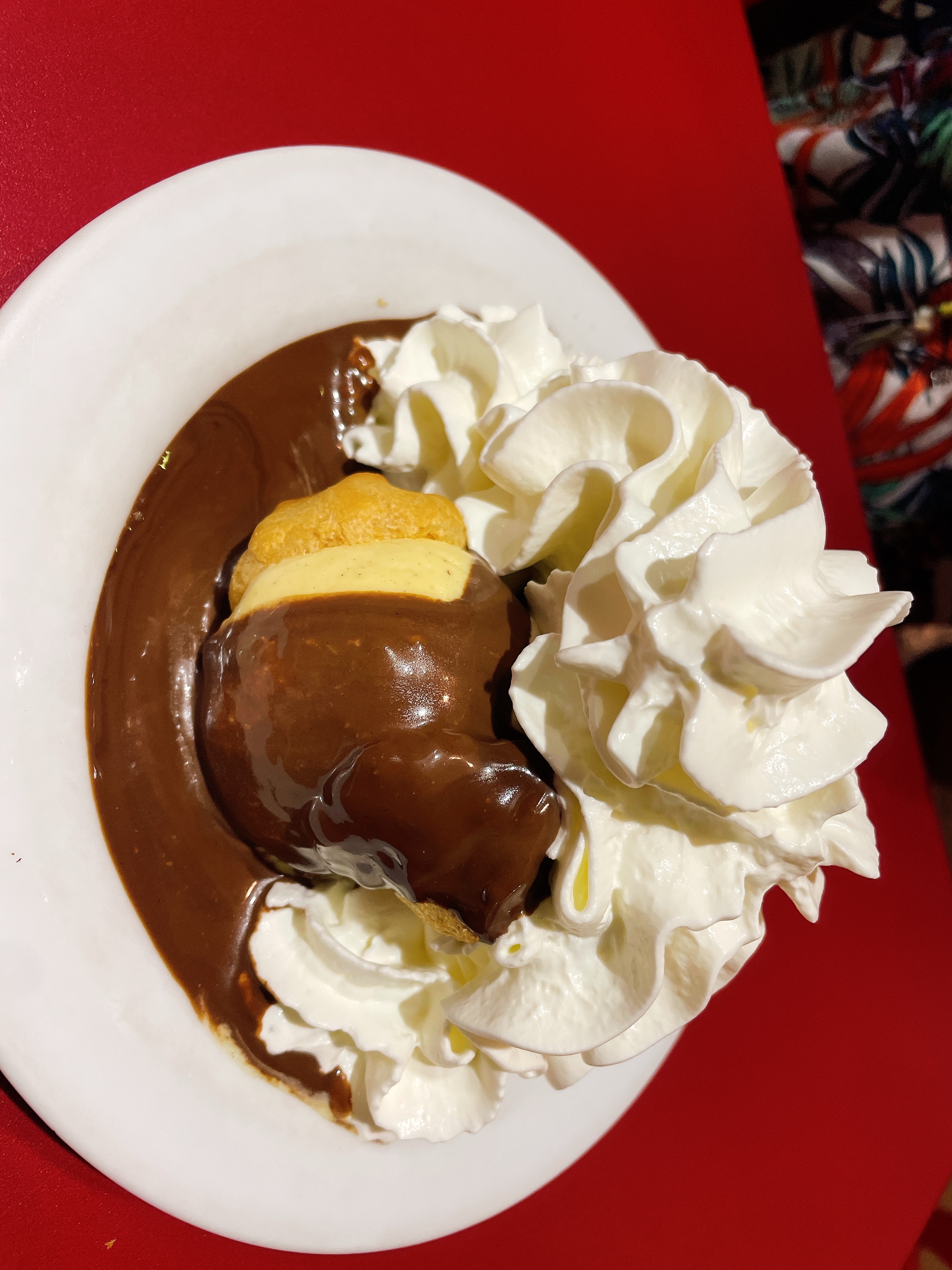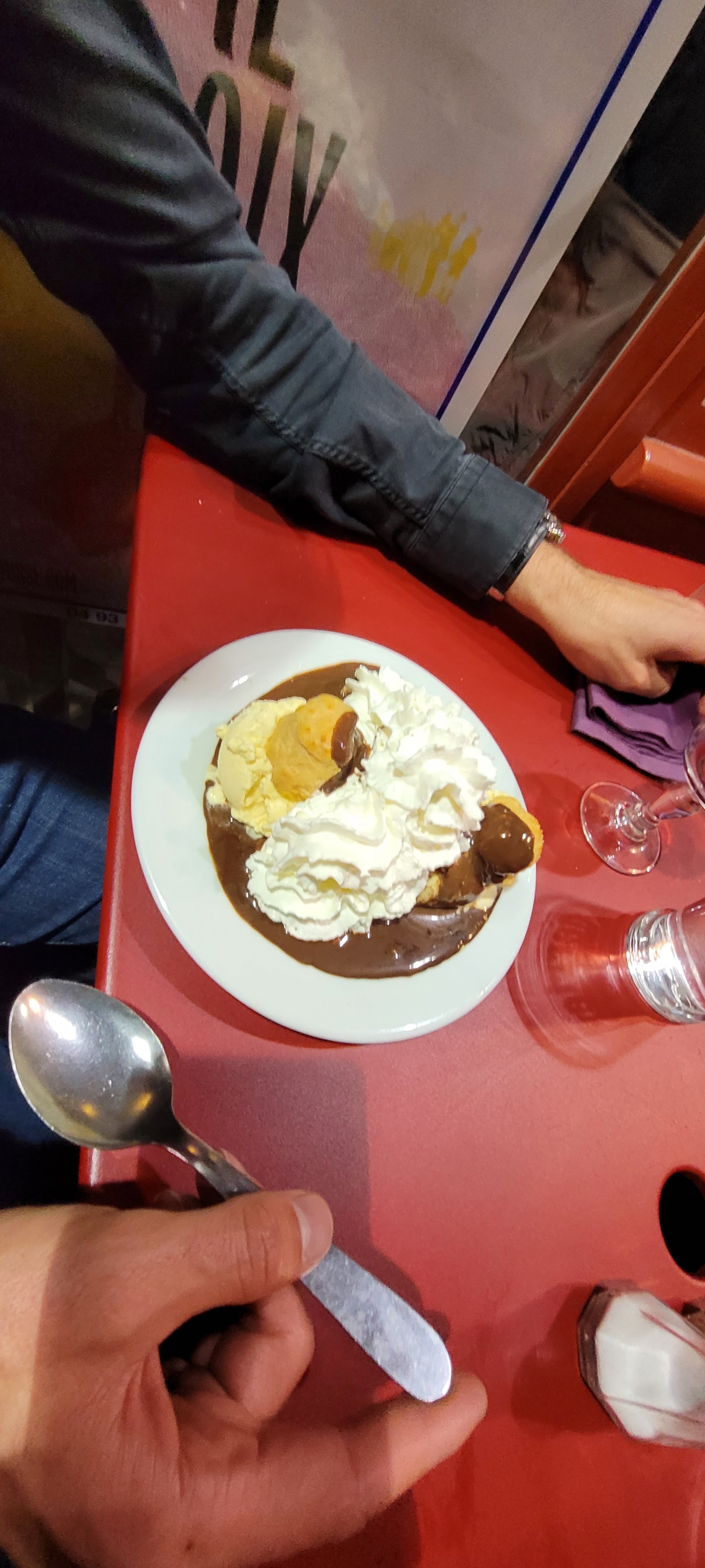 Pas facile de choisir un restaurant dans ce quartier de Lyon. Le choix est impressionnant et les quelques informations disponibles ne sont pas forcément pertinentes. Nous avons atterri là un peu par hasard, car le prix nous semblait correct. Pour 50 €, nous avons eu droit à un espresso et 3 menus, comprenant une entrée, un plat, un dessert. La qualité et la quantité étaient bonnes, je recommande particulièrement les profiteroles pour le dessert.