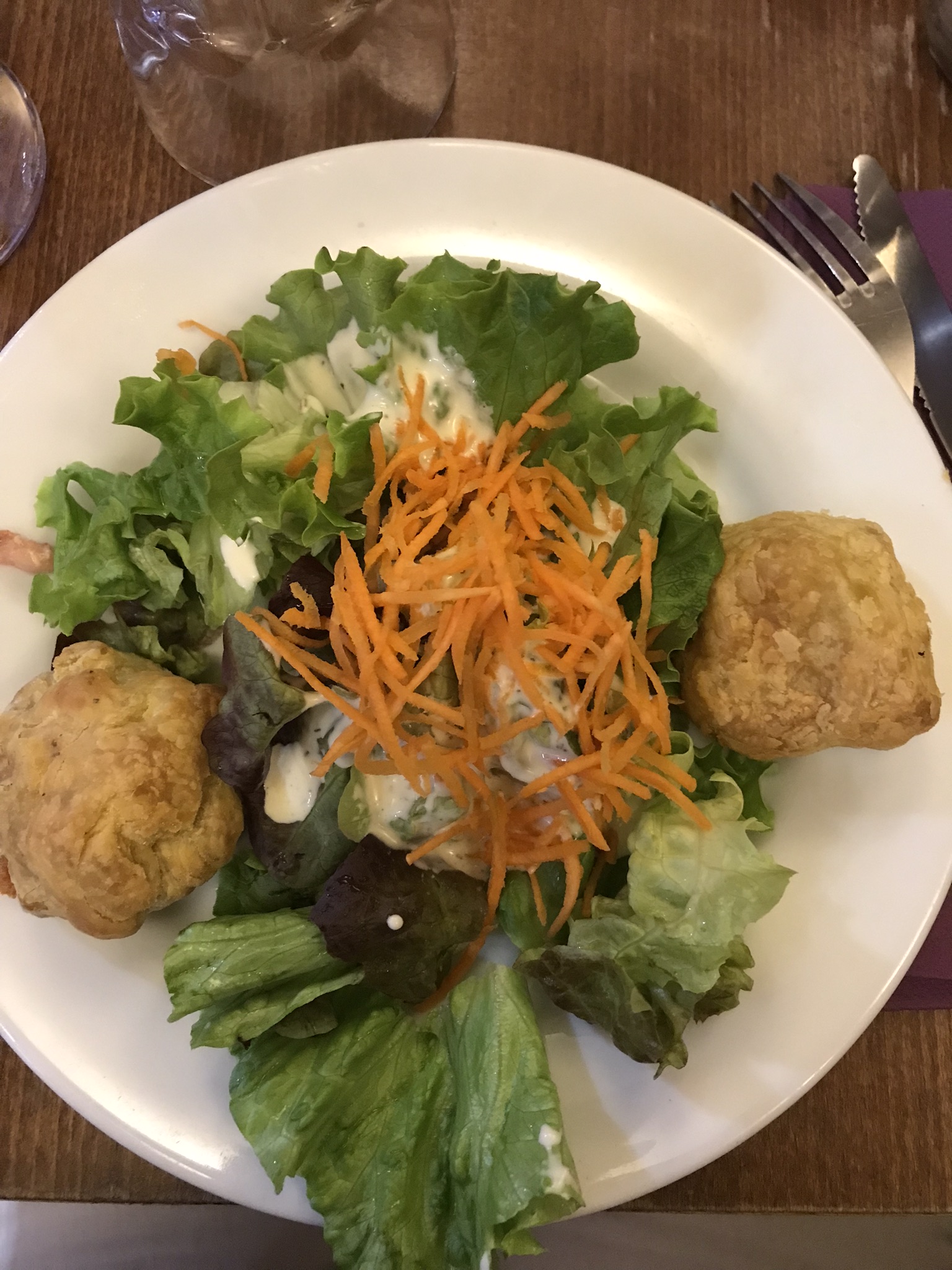 Folle journée où un pigeon s’est pointé dans le restaurant attiré par les senteurs de ce bouchon idéalement placé dans le Vieux Lyon ! Les plats proposés sont aussi vraiment imbattables niveau qualité prix Par contre, forcément, qui dit prix réduit dit qualité moindre, sans parler d’un saumon qui nous a été servi qui était encore cru à l’intérieur. Nous l’avons signalé, et 10 minutes plus tard, on nous a resservi un saumon un peu plus cuit cette fois-ci mais encore très rosé à l’intérieur (la photo est celle du deuxième saumon) 😕 Mais pour le reste, au vu du prix, cela reste quand même très correct