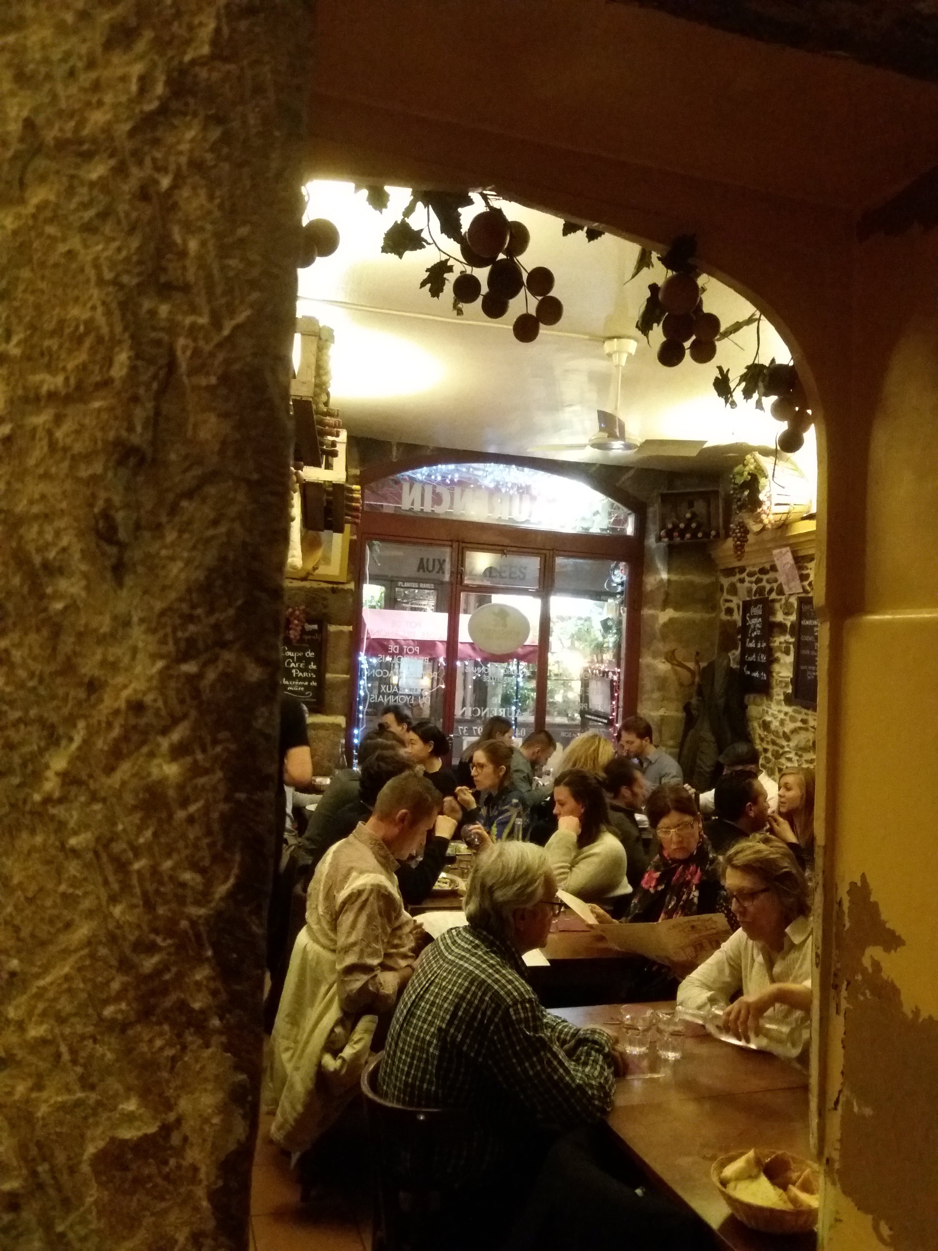 Un bouchon lyonnais, dans le vieux lyon, cadre super sympa ! Du choix dans le menu, et surtout un bon rapport qualité prix (entrée/plat/dessert) pour 15 euros. Dommage que l'on ai oublié nos café, malgré tout, tout le monde a passé un bon moment!