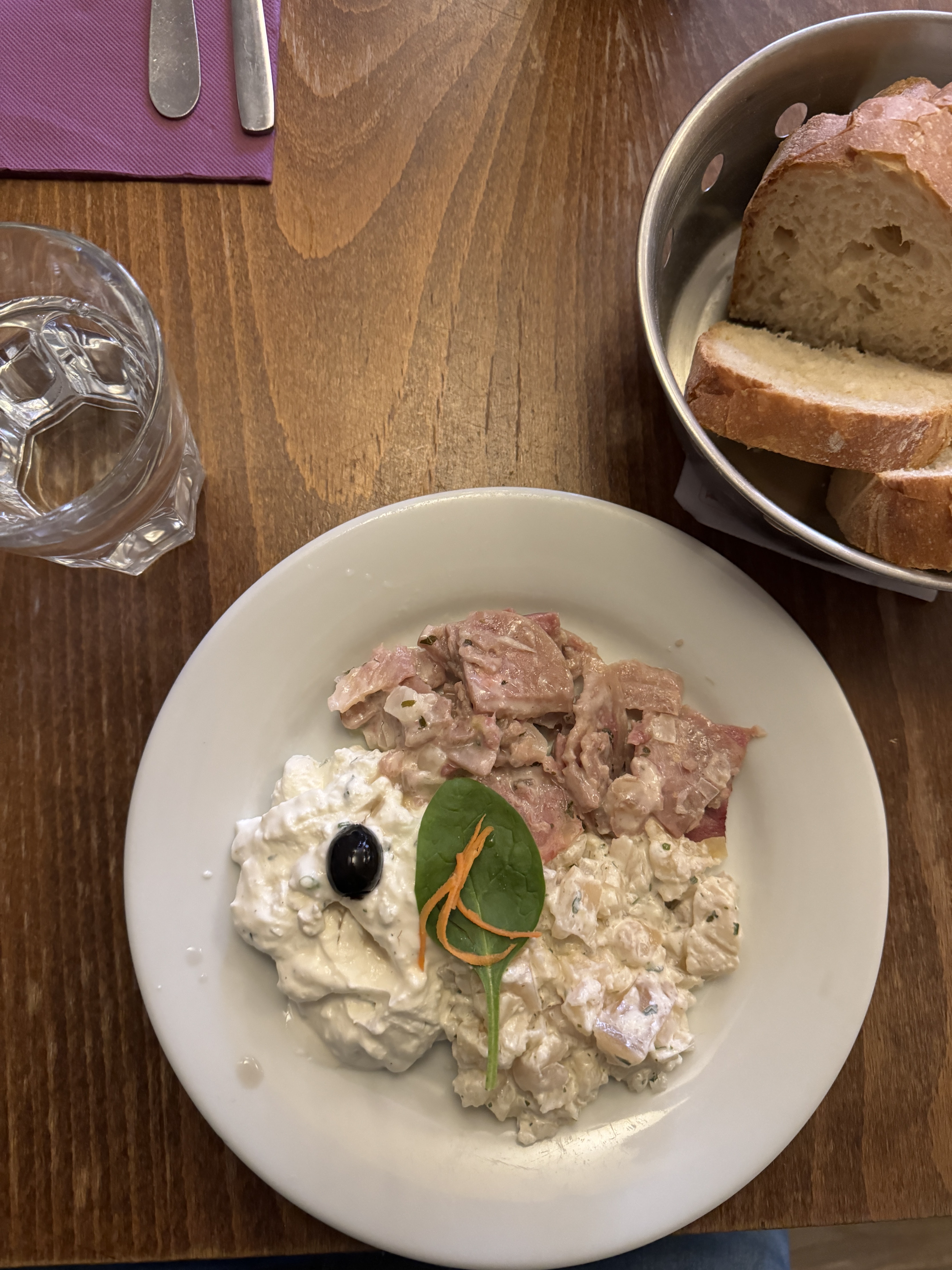 Pas très agréable, cuisine généreuse et simple. Prix corrects. Un peu plus d'amabilité : pas de clients, pas de revenus... Les touristes viennent découvrir votre cuisine et votre ville,un peu de respect 😉