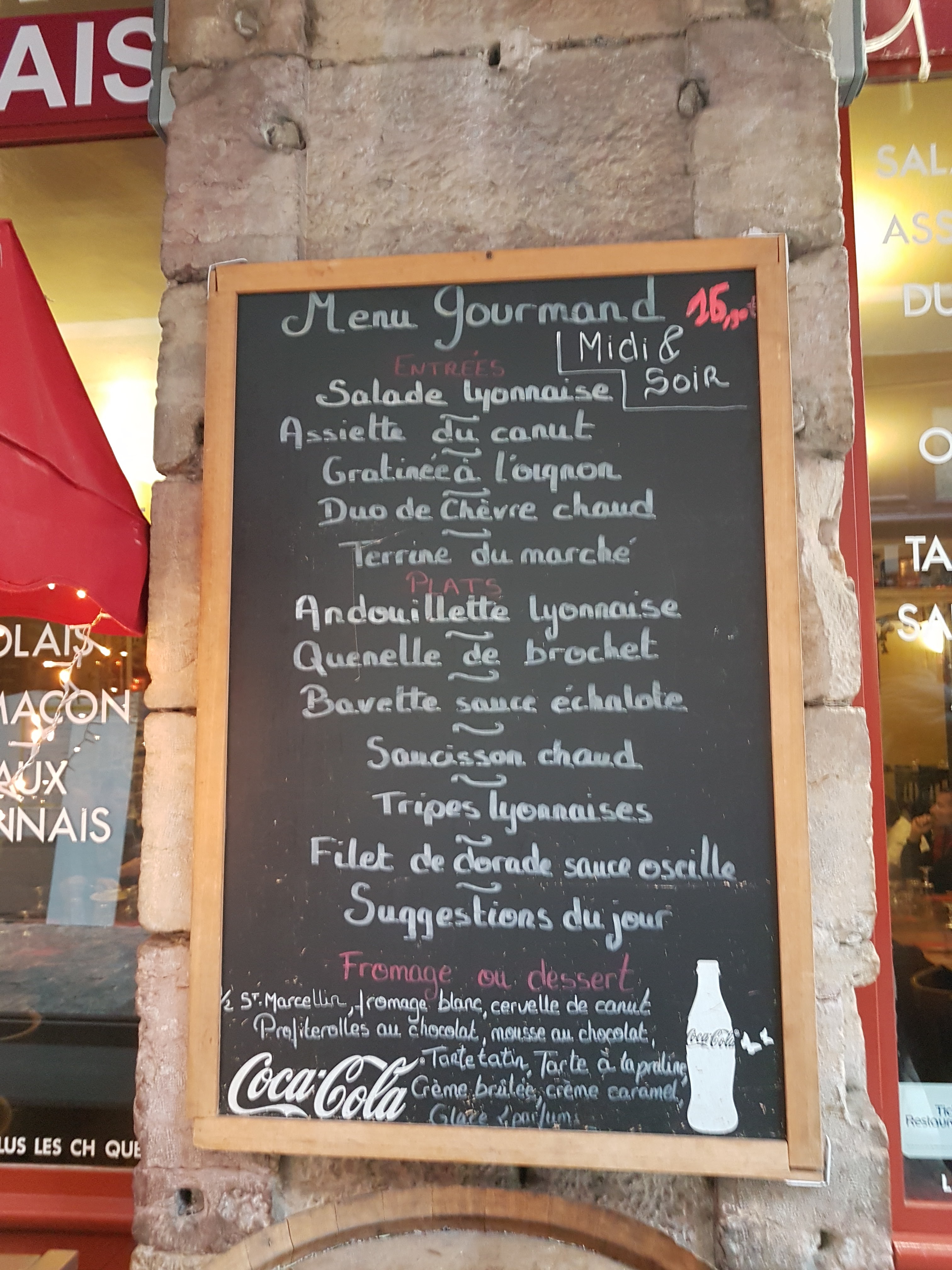 J'habite depuis 3 ans à Lyon et je n'avais jamais pris le temps d'aller dans un Bouchon Lyonnais. J'ai été agréablement surpris, les plats étaient bons, le service agréable .. un bon rapport qualité/quantités/prix ... 55 euros pour deux menus entrée, plat, fromage, dessert et vins. Un petit bémol sur les tables de la terrasse qui sont trop inclinées, même si cela est lié aux pavés de la rue et pour notre apéritif (graton) retirés avant la fin.