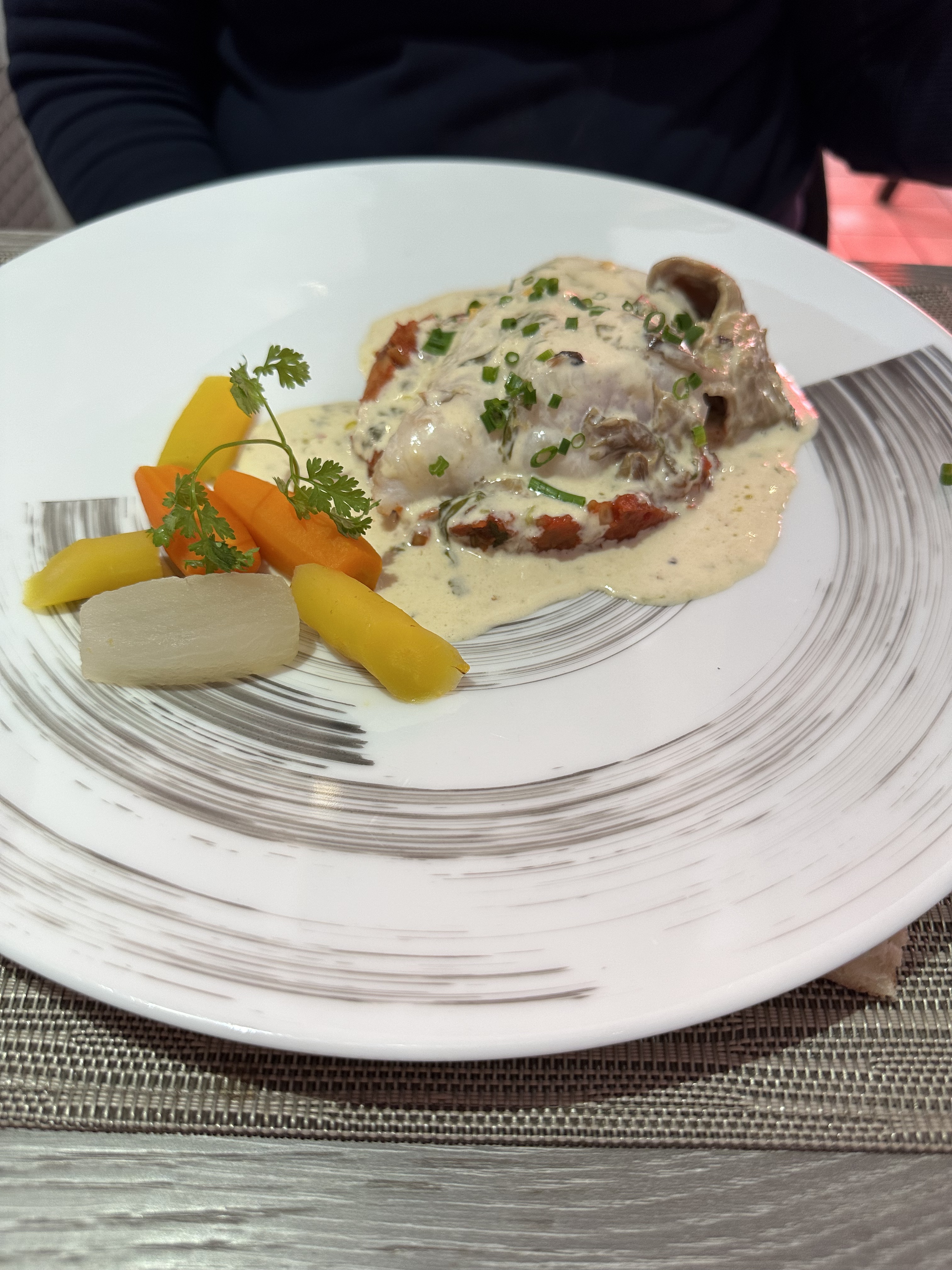 Parfait. Produits frais St Jacques sauce ciboulette excellente. Top de bout en bout. Le personnel au petit soin.