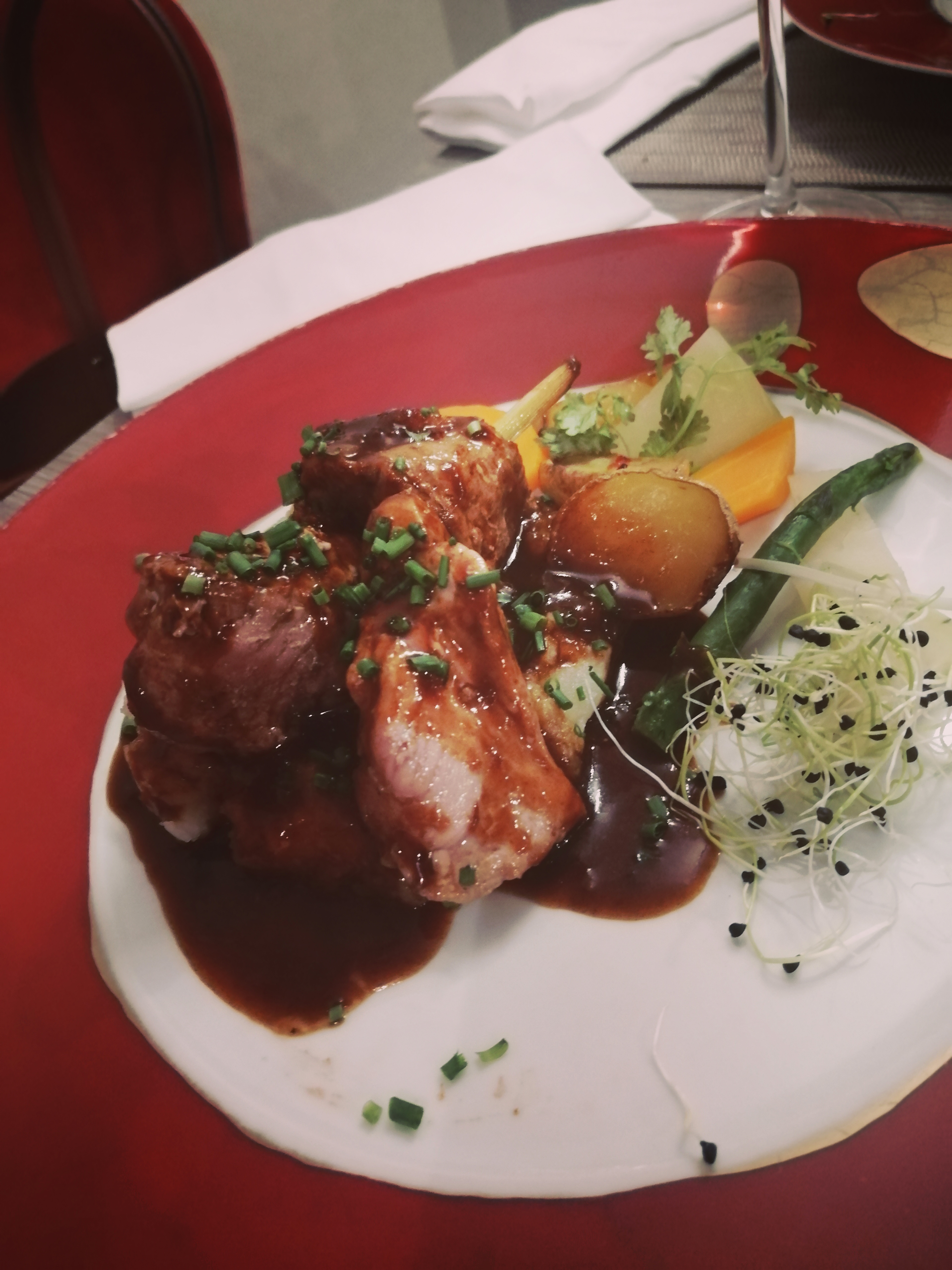 Repas excellent! Belle présentation, qualité des aliments au top! Juste les serveurs un peu sous pression... A peine fini, les assiettes étaient déjà ôtées et remplacées par les suivantes. Rien à dire au niveau rapport qualité/prix du repas par contre!