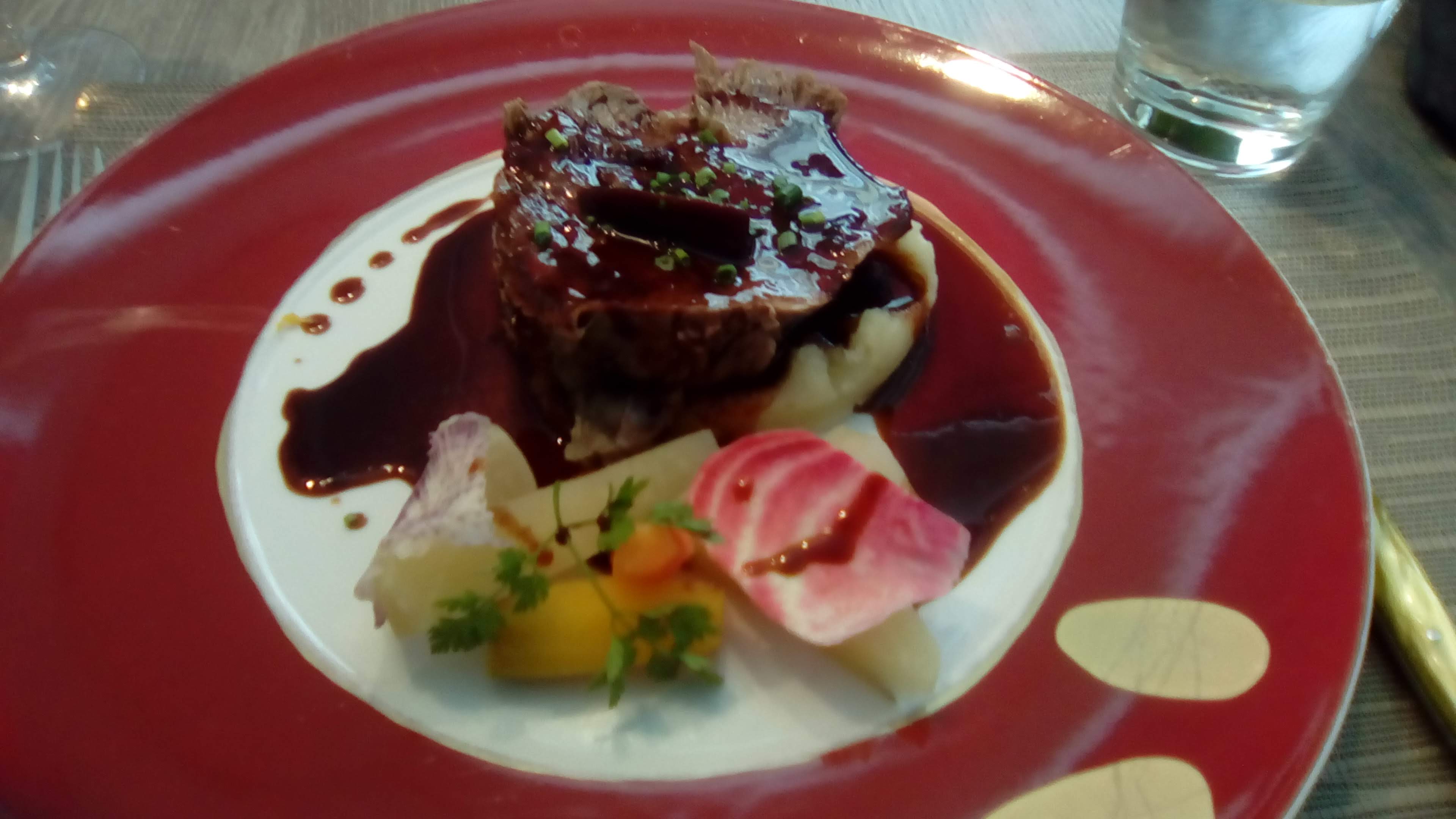 Service : 5/5 De bons produits et une très belle cuisson de la viande. Cependant : Une cuisine assez quelconque avec de nombreuses petites erreurs (Légumes pas assez cuits, salade pas assaisonnée, écrasée de pommes de terre pas assez salée & pas de salière à table, sauce au vin un peu brûlée, glaces & sauce chocolat pas faits maison dans le dessert). En somme un peu décevant pour un menu à plus de 40€, je ne pense pas y retourner