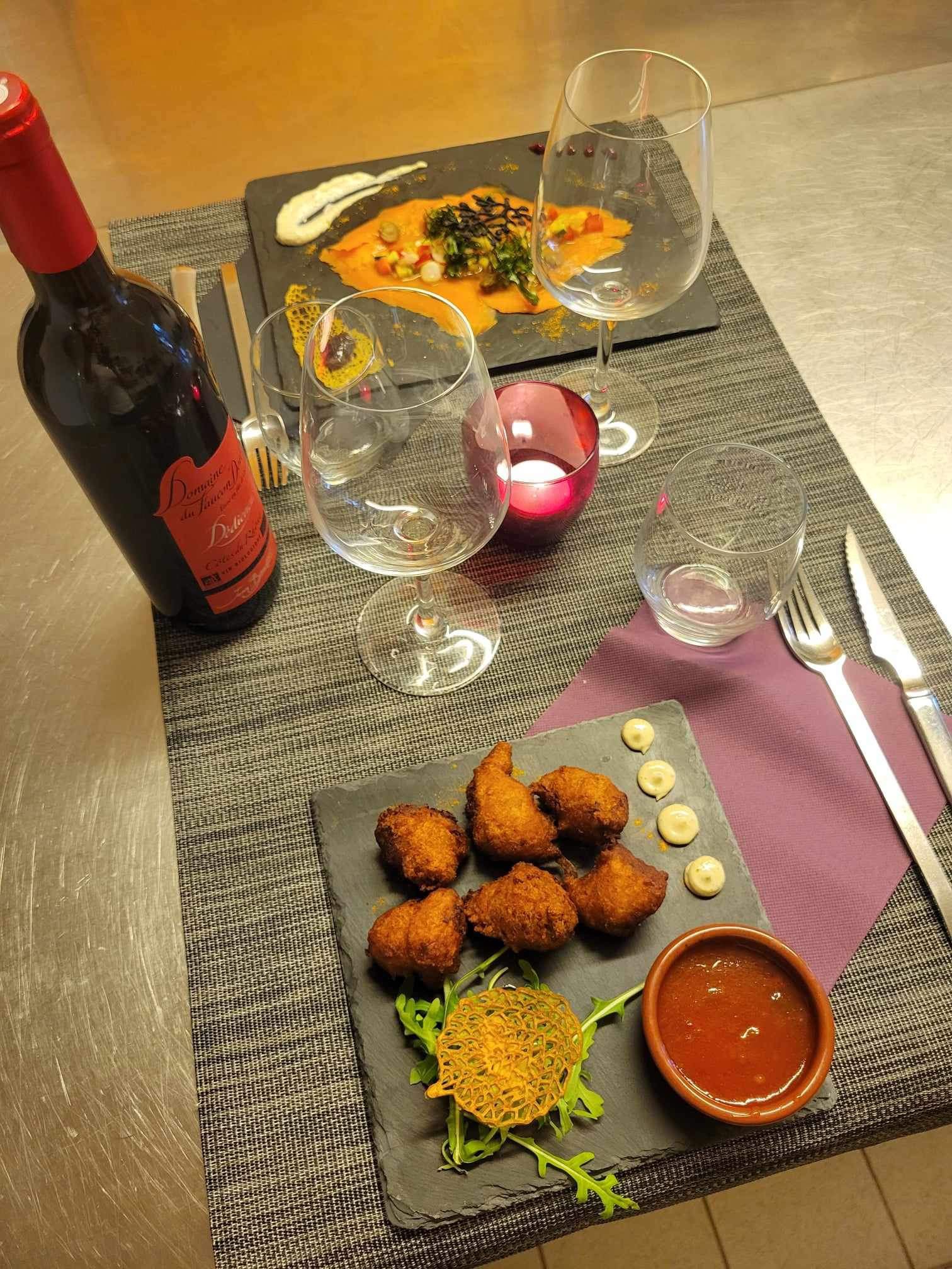 Cuisine originale, chargée du sud. Lieu atypique dans un charmant petit village. Personnel souriant, service rapide.