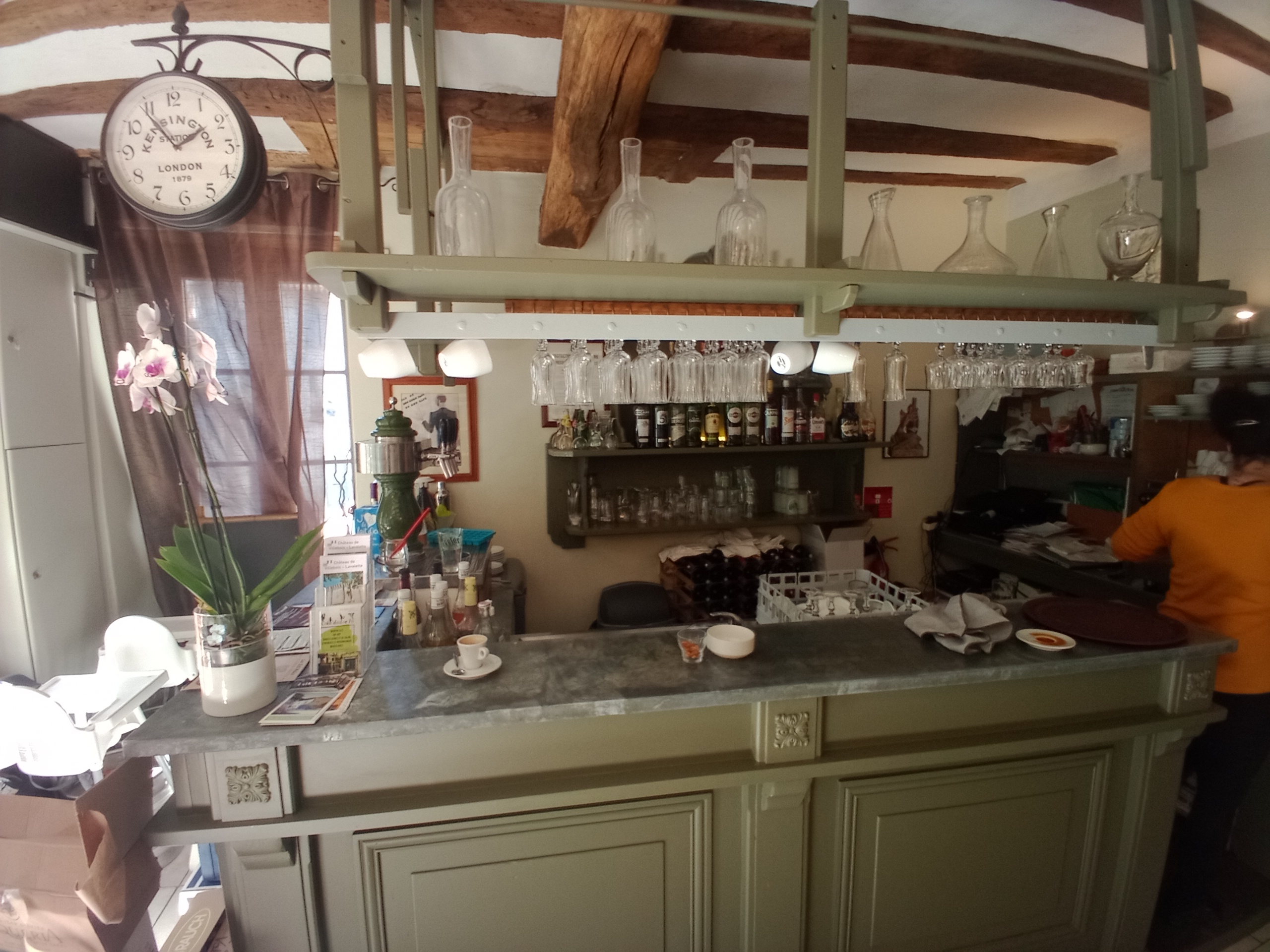 Très sympa, la nourriture et le cadre. Le service est aussi à la hauteur, j'ai apprécié mangé à l'ombre dans cette très belle petite ville médiévale. On m'a tout de suite proposé de l'eau pour mes animaux et c'est assez rare. Le rapport qualité prix est très bon, un menu du jour pour un prix super correct entrée/plat pour 16€. L'établissement dispose aussi d'une jolie salle. Pensez à réserver car il y a pas mal de monde.