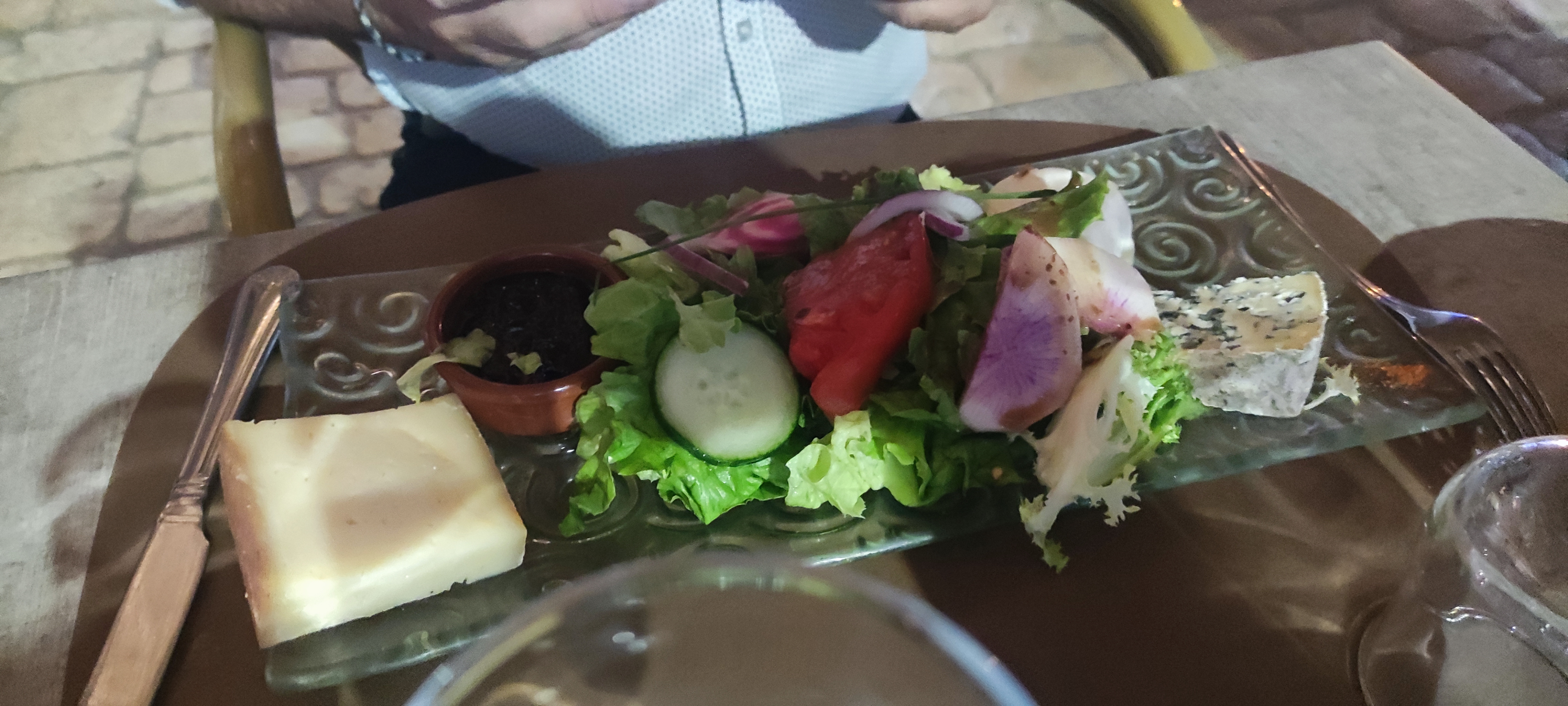 Repas dehors sous halles anciennes ,belles garnitures de légumes,très bien.