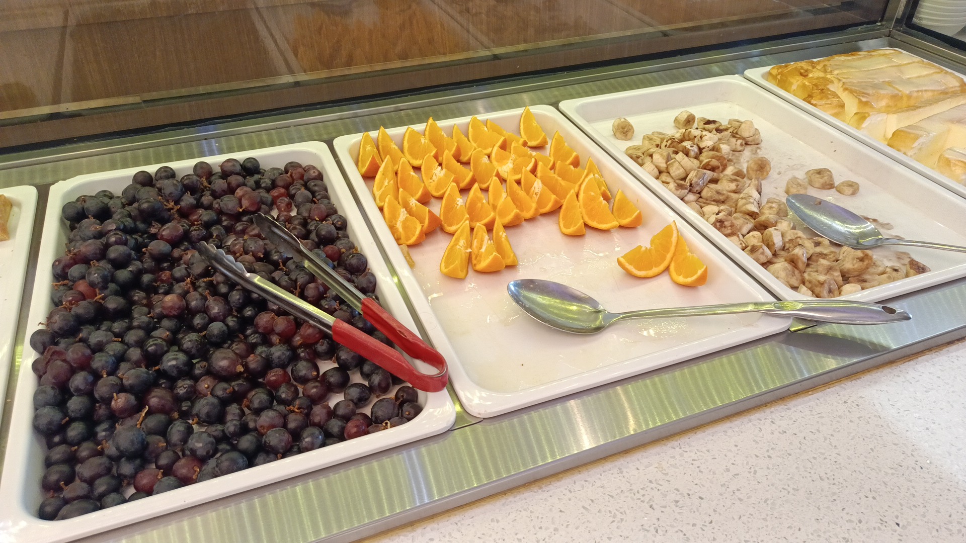 Divers choix de plats de plus ou moins bonnes qualités. Certaines viandes sont durs après cuisson. Des plats ne sont pas assez chauds . Plutôt satisfait concernant les desserts avec un large choix que ce soit pâtisseries , glaces ou fruits
