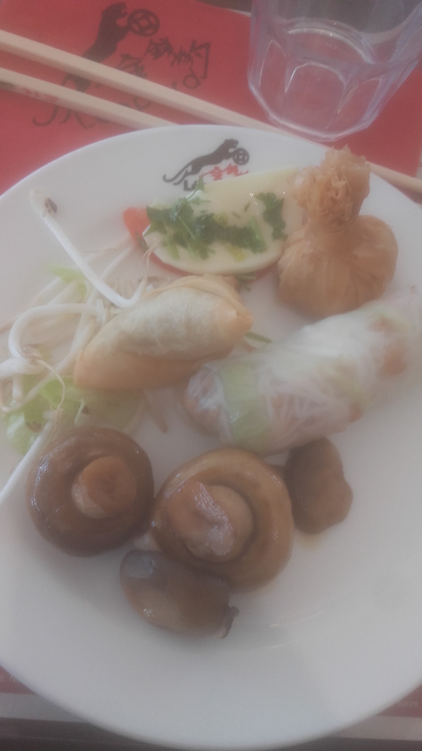 restaurant normal pour tout types de régimes , , pour moi trop grand comme tous les chinois maintenant , bruyant , pour le prix et a volonté ça va , mais je n'y retournerai pas , une carte avec une quantité infinie de plats , donc impossible que tout soit fait sur place , c 'est réchauffé , mais d’où cela provient il ??????