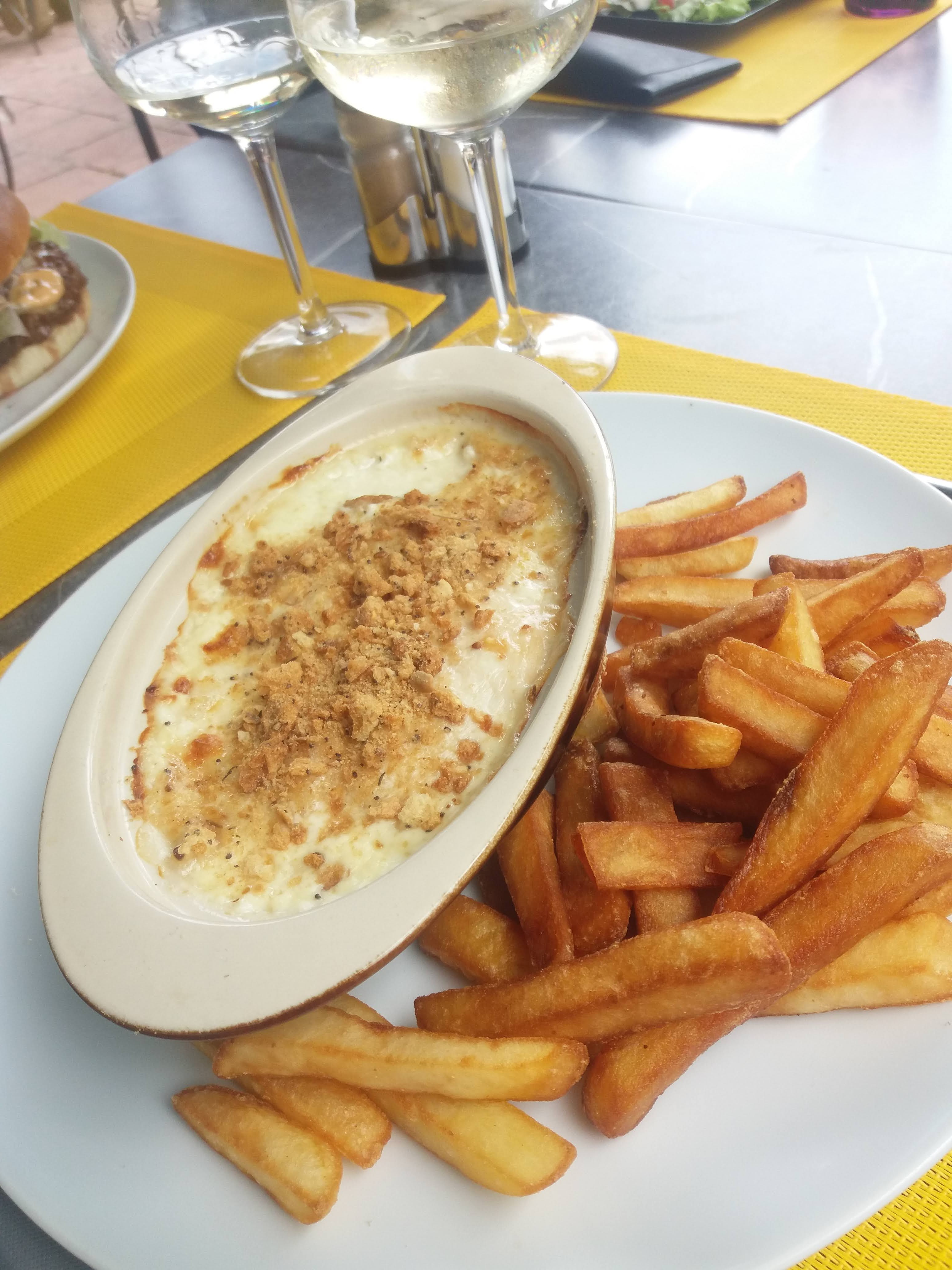 Nous y avons mangé un samedi midi ensoleillé. Le cadre est très bien . La terrasse est située à côté d'un jardin . La ville se fait oublier. J ai aimé le calme. Niveau plat : la nourriture est bonne mais mauvaise cuisson des frites. Bien trop cuites! Rien n est indiqué sur le fait maison ou non . Peut etre a l intérieur de la salle? Le rapport qualité prix reste très honnête. Sauf pour le café gourmand qui a été très décevant niveau dessert. Un peu cher pour ce qui est présenté. Les glaces sont top. Le service est impeccable. J y retournerai je ne prendrai ni de frites ni de café gourmand...