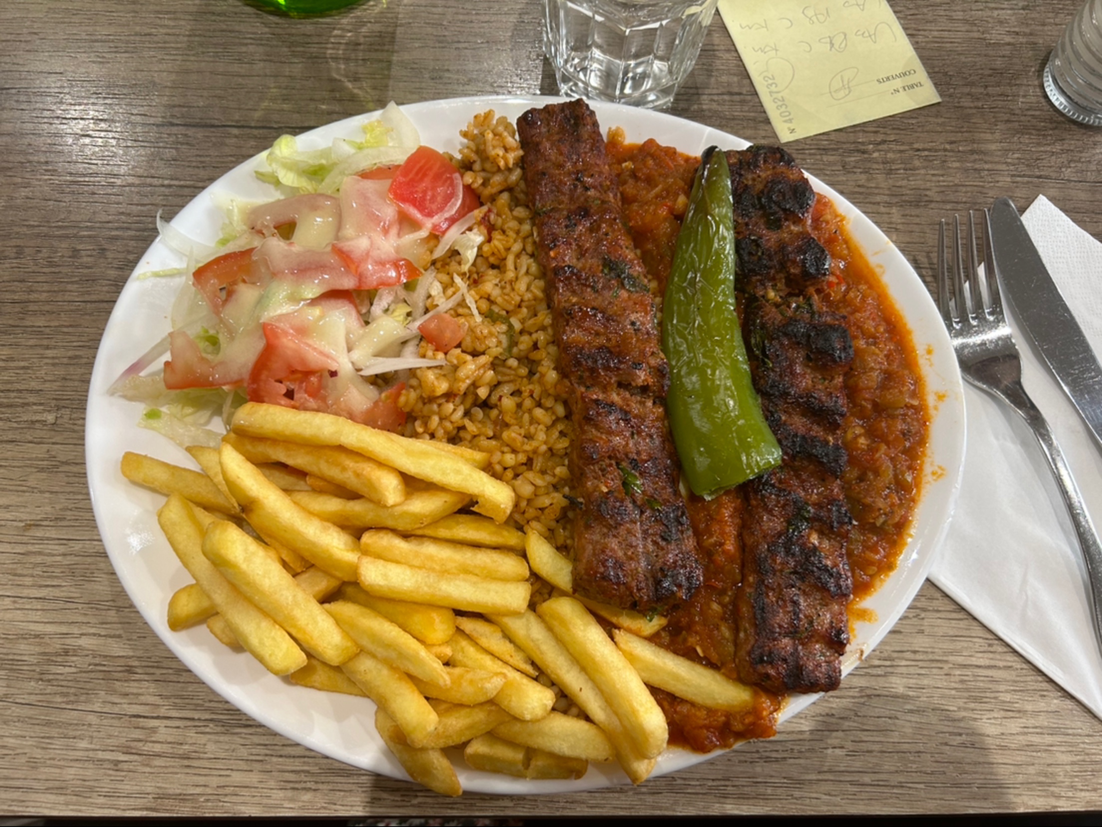 portions copieuses et de qualité les brochettes de l'assiette adana sont cuites sur un vrai barbecue ce qui est un vrai plus par rapport aux autres kebbab de la région