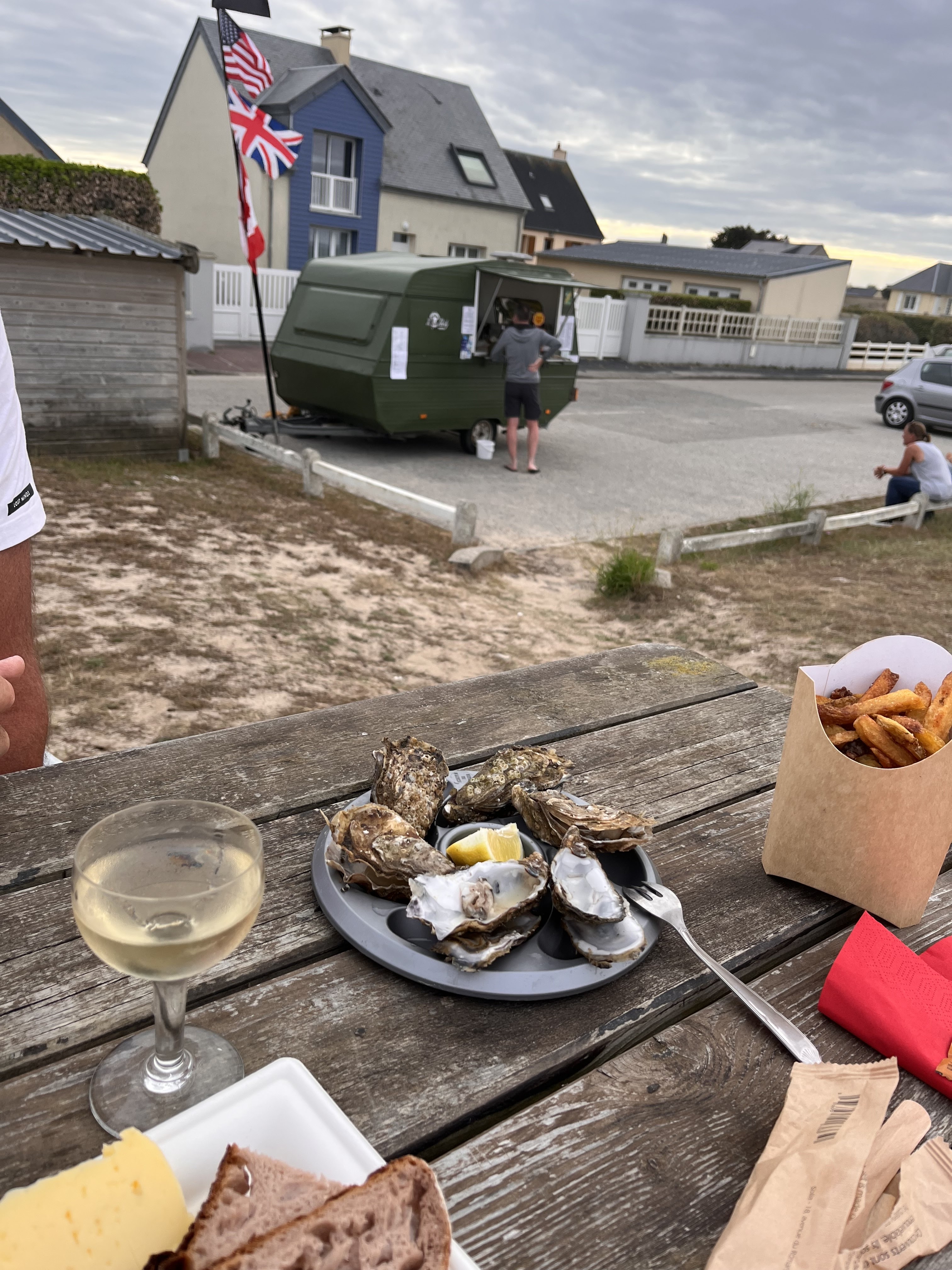 Arrêt improvisé à cette baraque à frites (maison). Accueil sympathique et dégustation d'huîtres face à la mer. Que des produits locaux et bio, what else ?