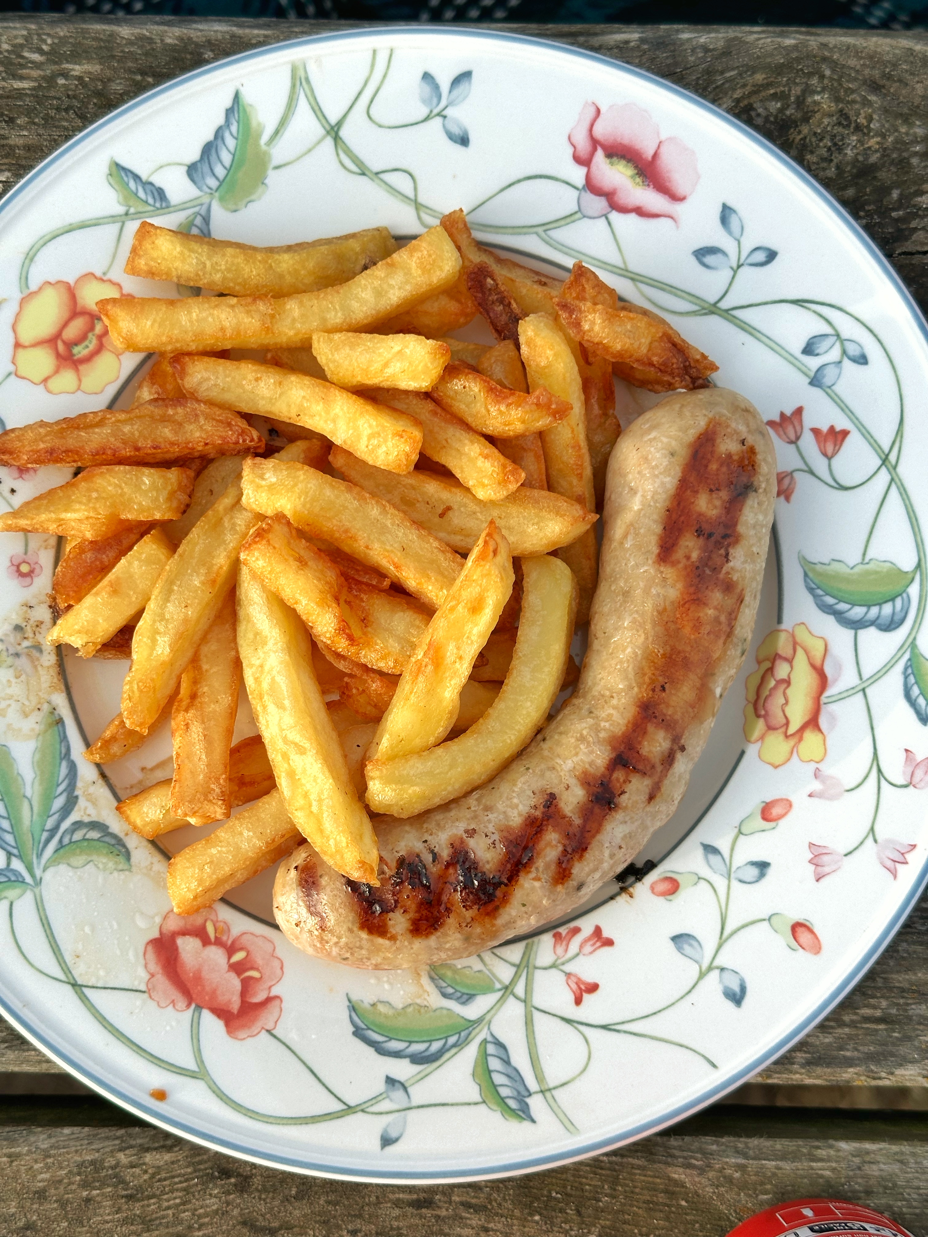 De délicieuses frites maison croustillantes, une savoureuse saucisse normande accompagnée d'une bonne bière bien fraîche, avec vue sur une superbe plage, que demander de plus ? Le propriétaire est très sympathique et est venu nous servir car nous avons dû attendre un peu. Si vous devez attendre un peu, ce n'est pas un problème😀
