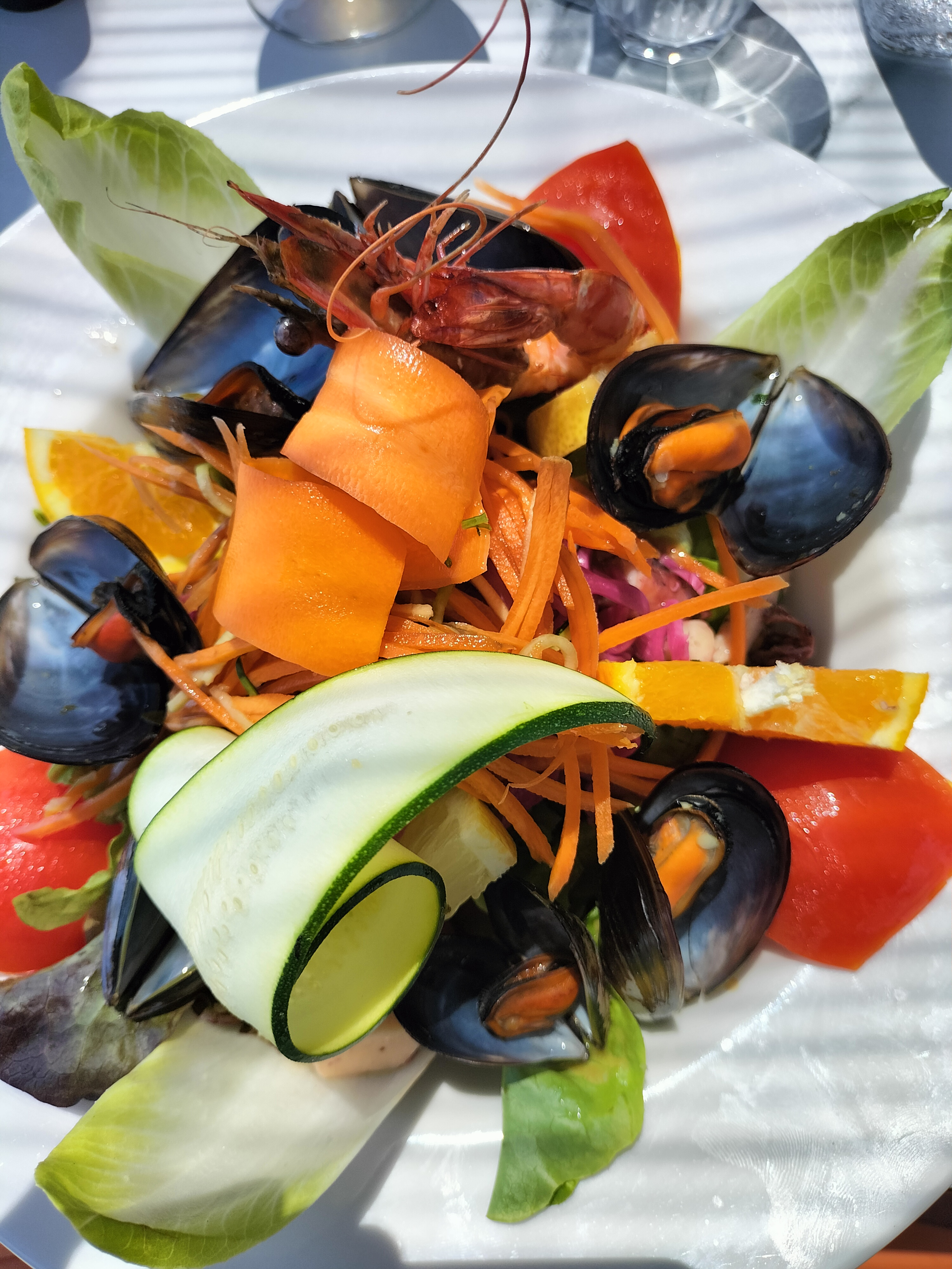 Plus de moule à 19h40… Une salade de saint Jacques avec des pétoncles surgelés Heureusement qu’il y a la vue sur mer et que le service est aimable