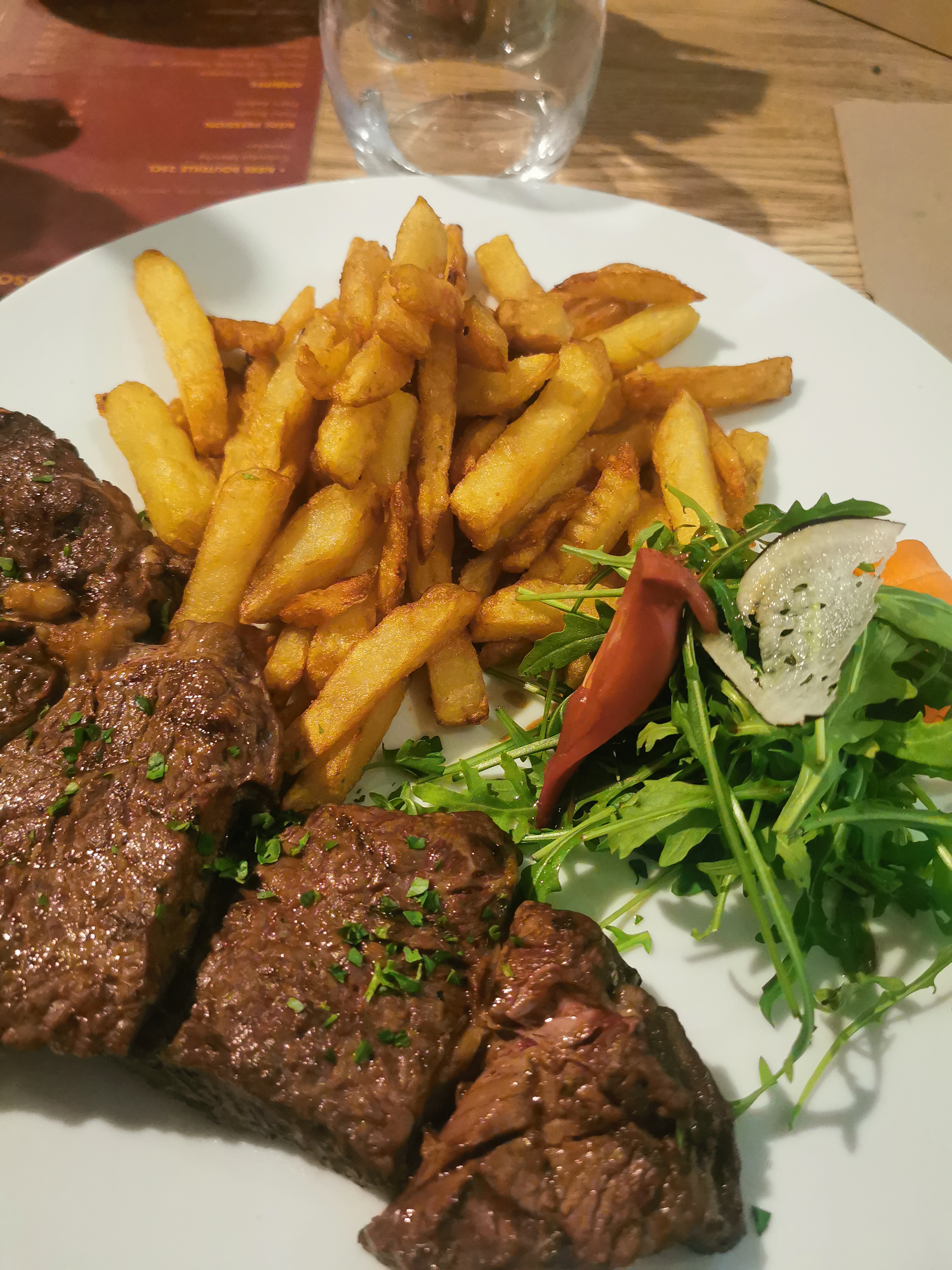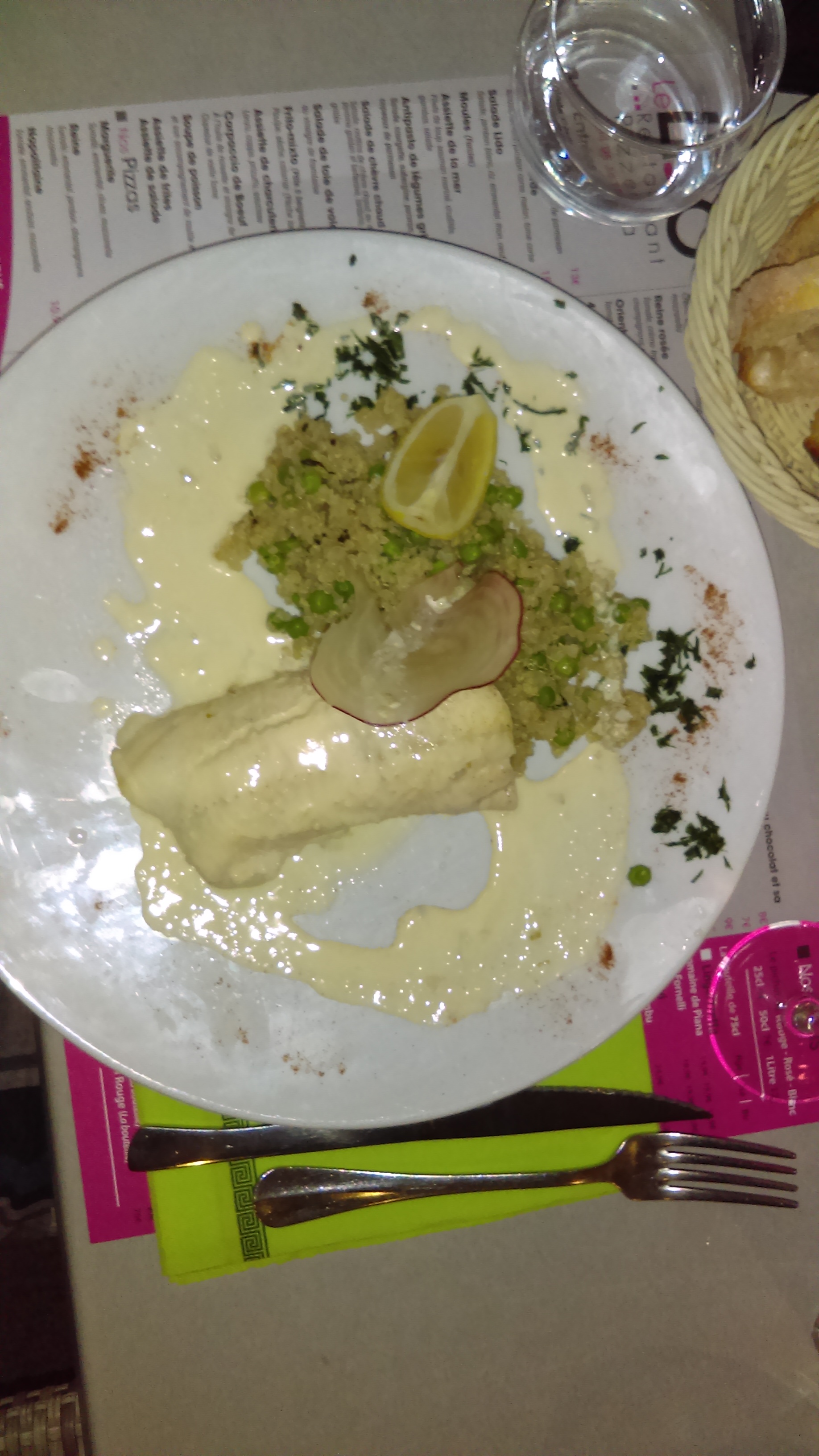 Cadre super, personnel très sympathique. Par contre, avons eu la mauvaise idée de prendre des moules, très fade, très mal nettoyées ( comme de l'herbe qui croquait sous les dents), vraiment très désagréable... dommage