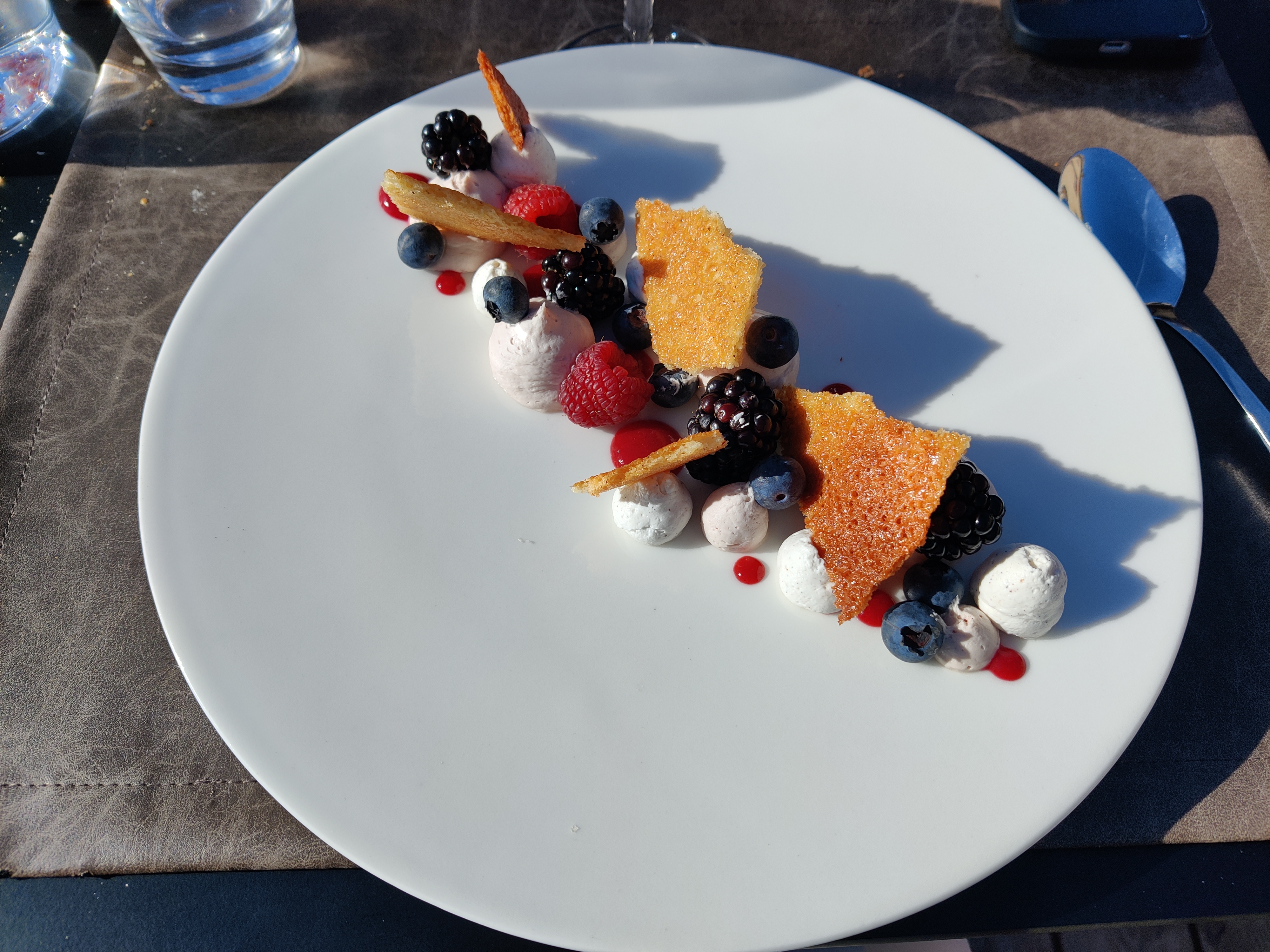 Goûter aux délicieux plats du jeune chef, confortablement installés en terrasse face aux montagnes ensoleillées a été un vrai moment de plaisir. Merci beaucoup, nous nous sommes régalés .....