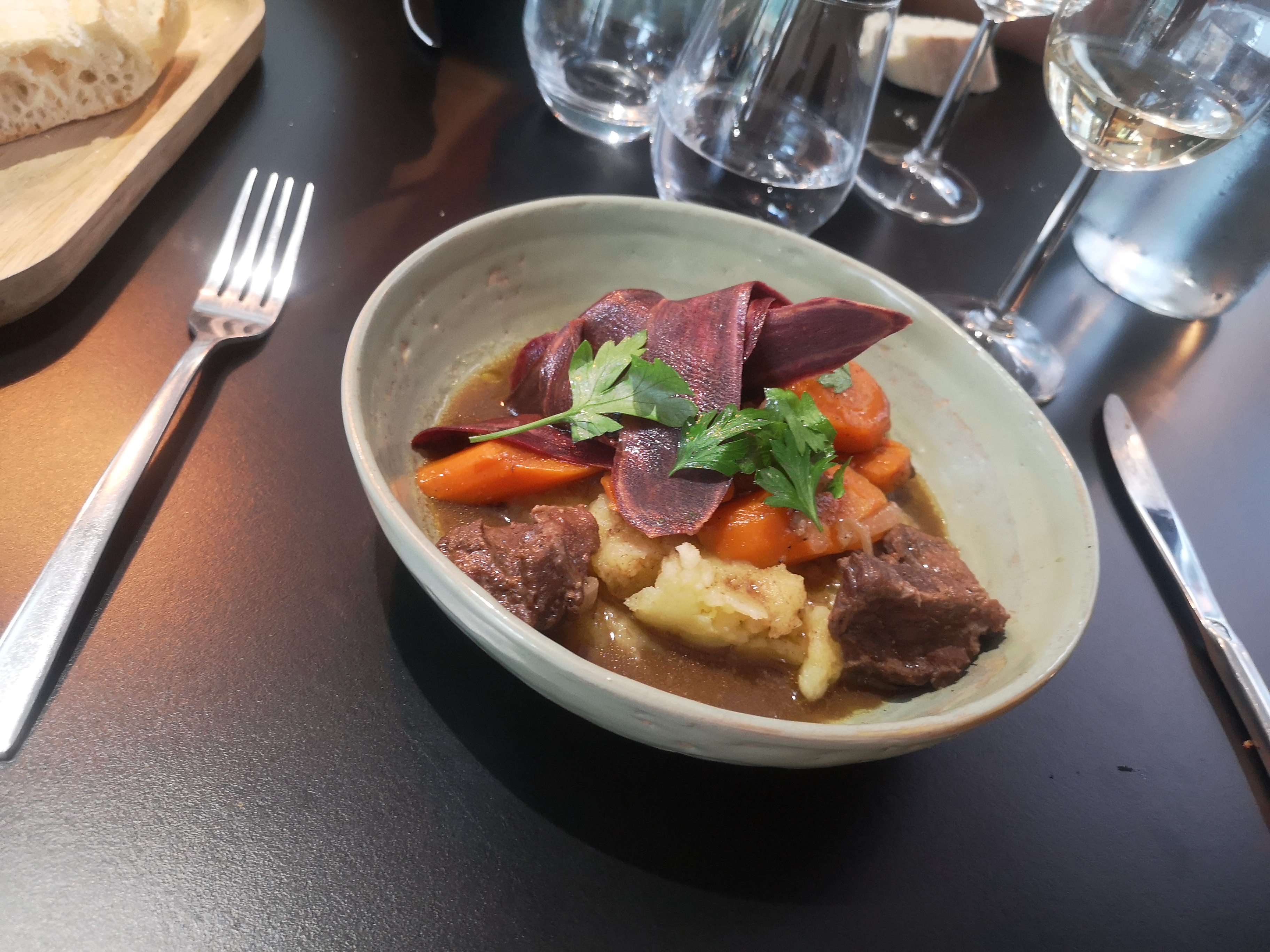J'avais entendu parler de ce nouveau restaurant par des amis et toujours en bien alors nous nous s'y sommes rendus. Déjà un accueil des plus chaleureux une jolie terrasse, le lieu a une belle atmosphère, et puis c'est très propre... un bon restaurant ça doit être un lieu ou l'on fait une promenade dans le style et les gouts... et bien bravo j'ai fait une super ballade, le ceviche de bœuf en entrée était un régal et la noix de joue de bœuf absolument délicieuse avec cette purée de patates douces violettes ont rendu ma ballade encore plus séduisante, le dessert était un régal, partage de douceur et d'acidité parfaitement équilibré avec le craquant du crumble. Voilà si la gastronomie et pour vous une ballade alors vous pouvez aller déjeuner ou souper dans ce restaurant vous ne serez je pense pas déçu... On reviendra c'est sur. Merci