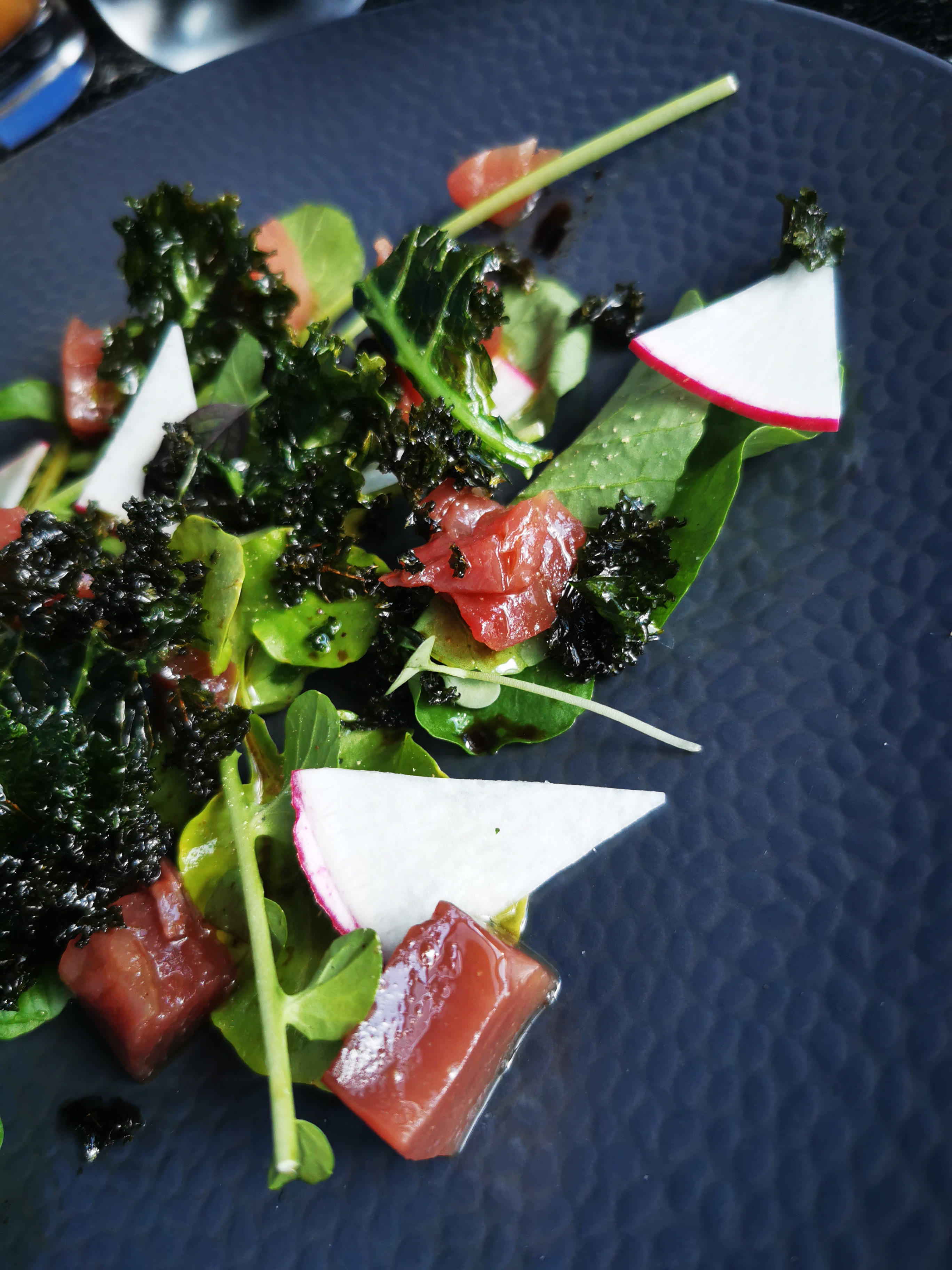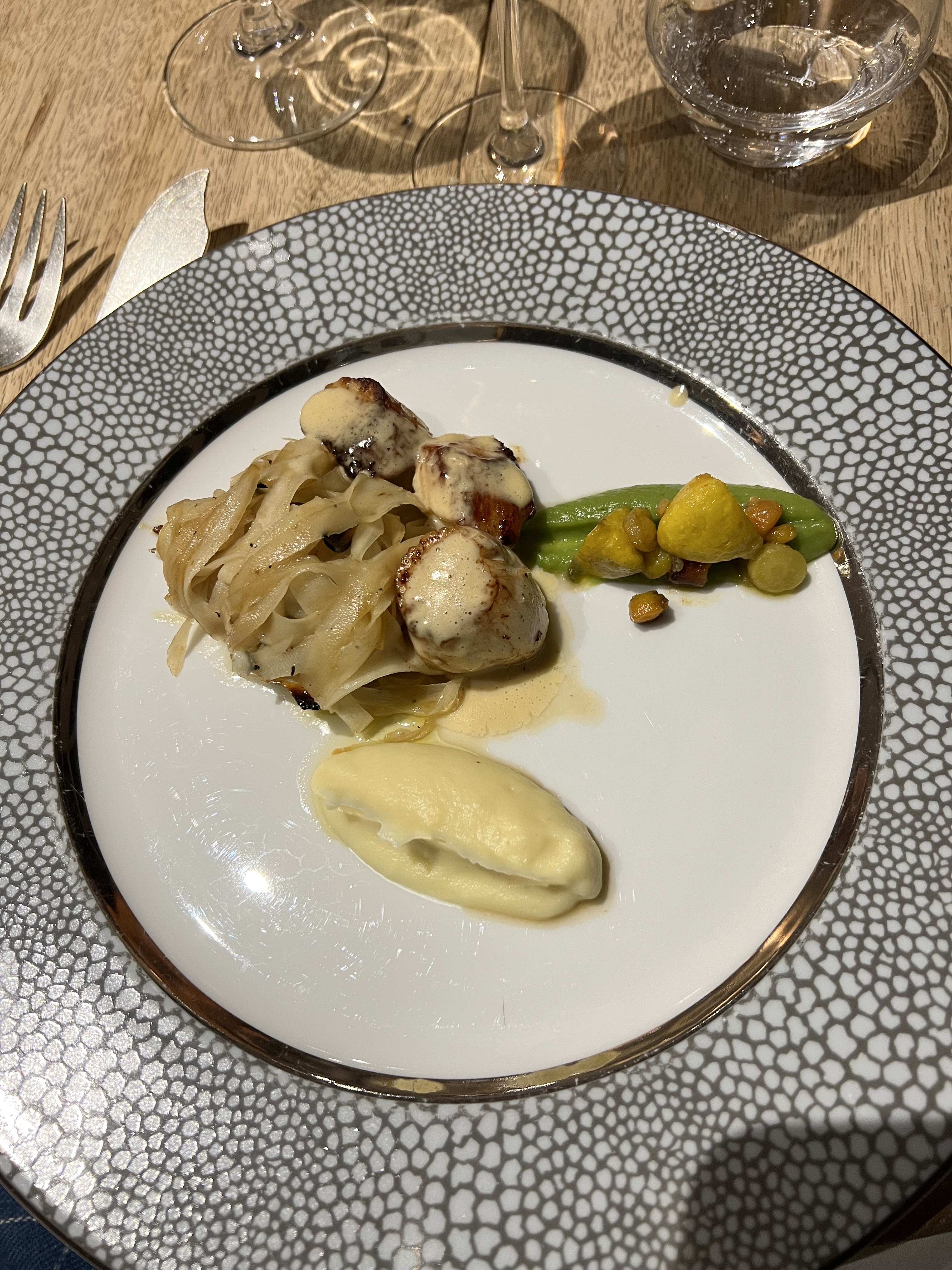 D’un point de vue culinaire : la cuisine est de saison. Le poisson était frais et sa cuisson maîtrisée. Cependant le vinaigre balsamique ne se marie pas du tout dans un plat avec du poisson blanc du chorizo et de la purée de butternut. L’équipe est agréable et le service est très bien fait. Néanmoins il est problématique que dans des restaurants pourtant réputés, les intolérances ne soient pas pris en compte. (Tout avait été précisé à la réservation). Si vous avez une intolérance type gluten ou lactose, abstenez vous. Rien n’a été fait pour accommoder mon repas (pas de pain sans gluten de prévu, juste les garnitures enlevées des plats…). Au niveau du dessert c’est l’apothéose : tout avait du gluten. Je n’ai donc rien mangé. Je reste donc très mitigée au sujet de cette expérience.
