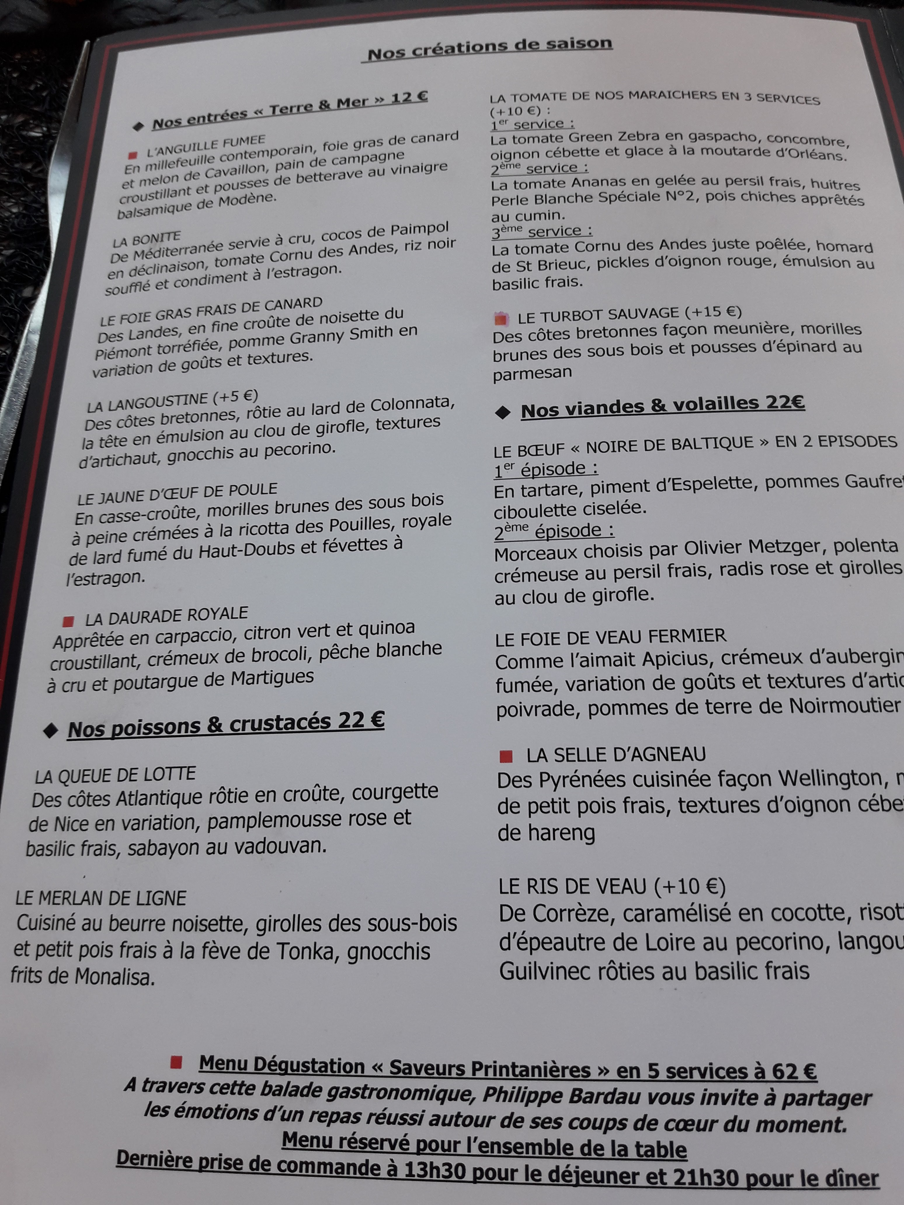 Lieu toujours aussi agréable et les plats sublimes et délicieux. Merci pour le service charmant et discret.