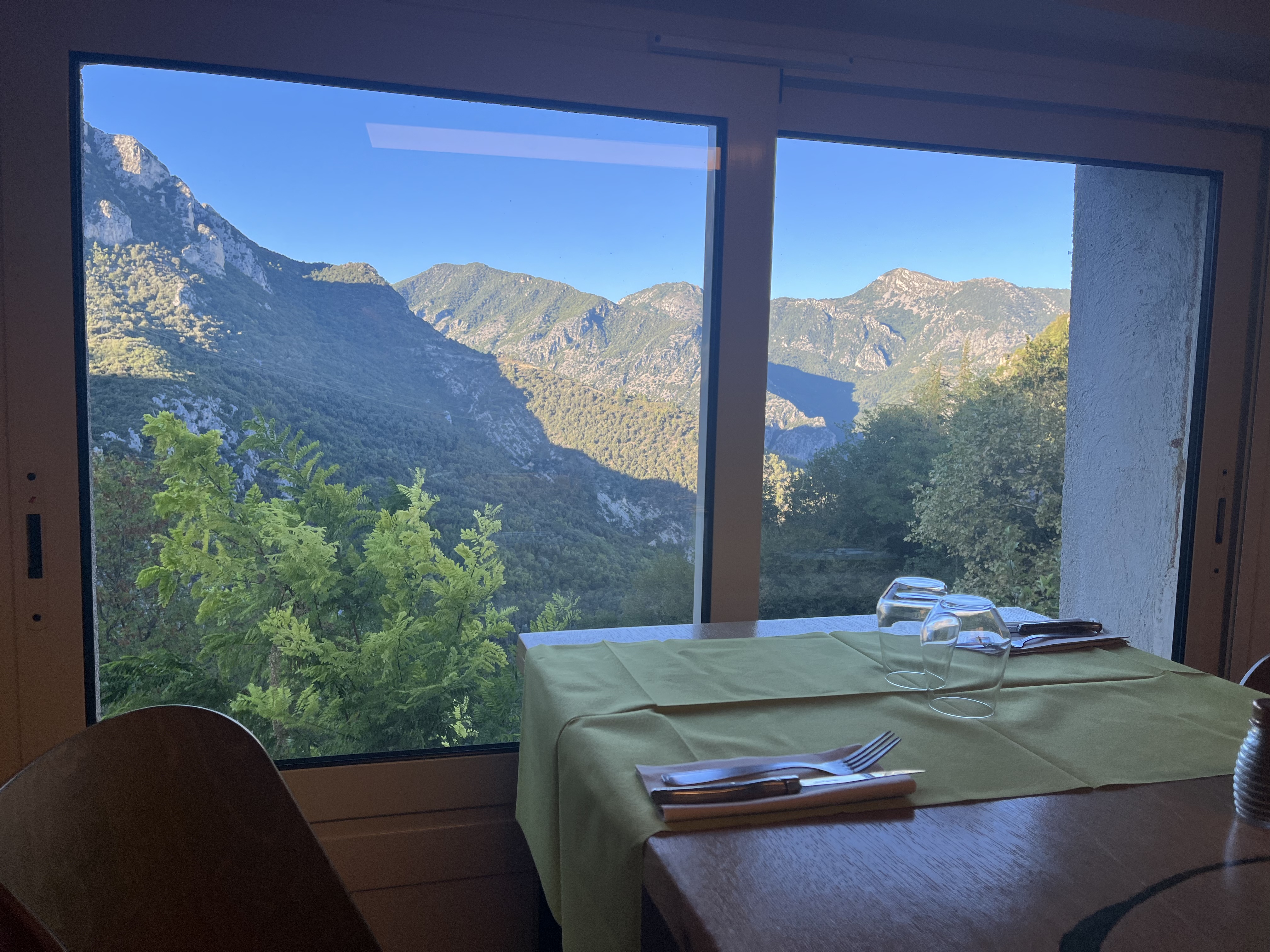 Bonne cuisine et restaurant avec une super belle vue sur la vallée.