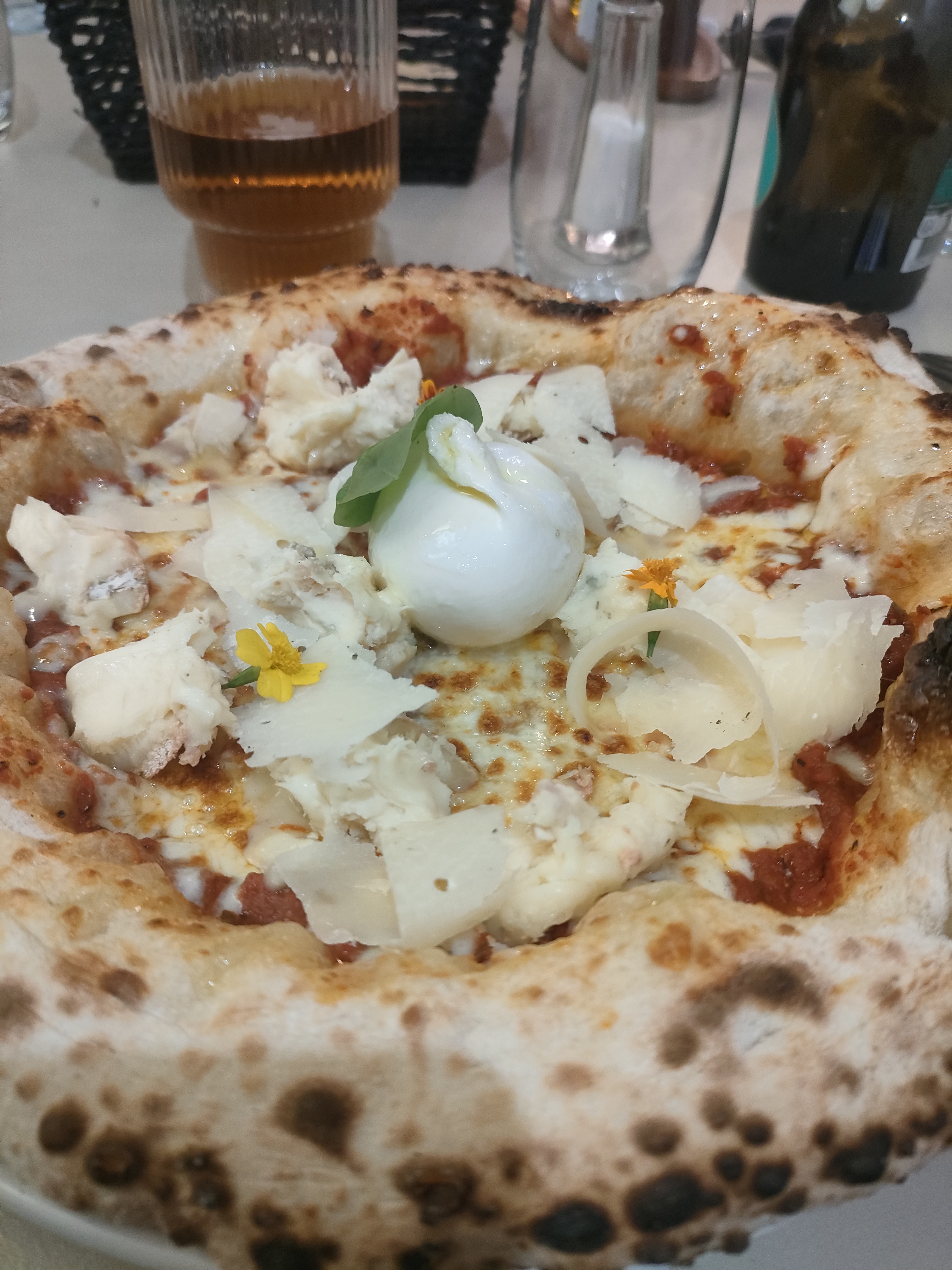 Pizzas excellentes et la décoration très belle mais la propreté très moyenne… la table collait. Nous étions les derniers et le personnel passait l’aspirateur et la toile pendant qu’on mangeait notre dessert. Et je pense qu’il est important de préciser qu’il n’y a aucun alcool, personnellement j’aurai aimé boire un cocktail ou un verre de vin ce soir-là et nous avons eu un spritz sans alcool… autant dire tout sauf un spritz… Assez déçue compte tenu également de ce que nous avons payé, je ne pense pas y revenir.