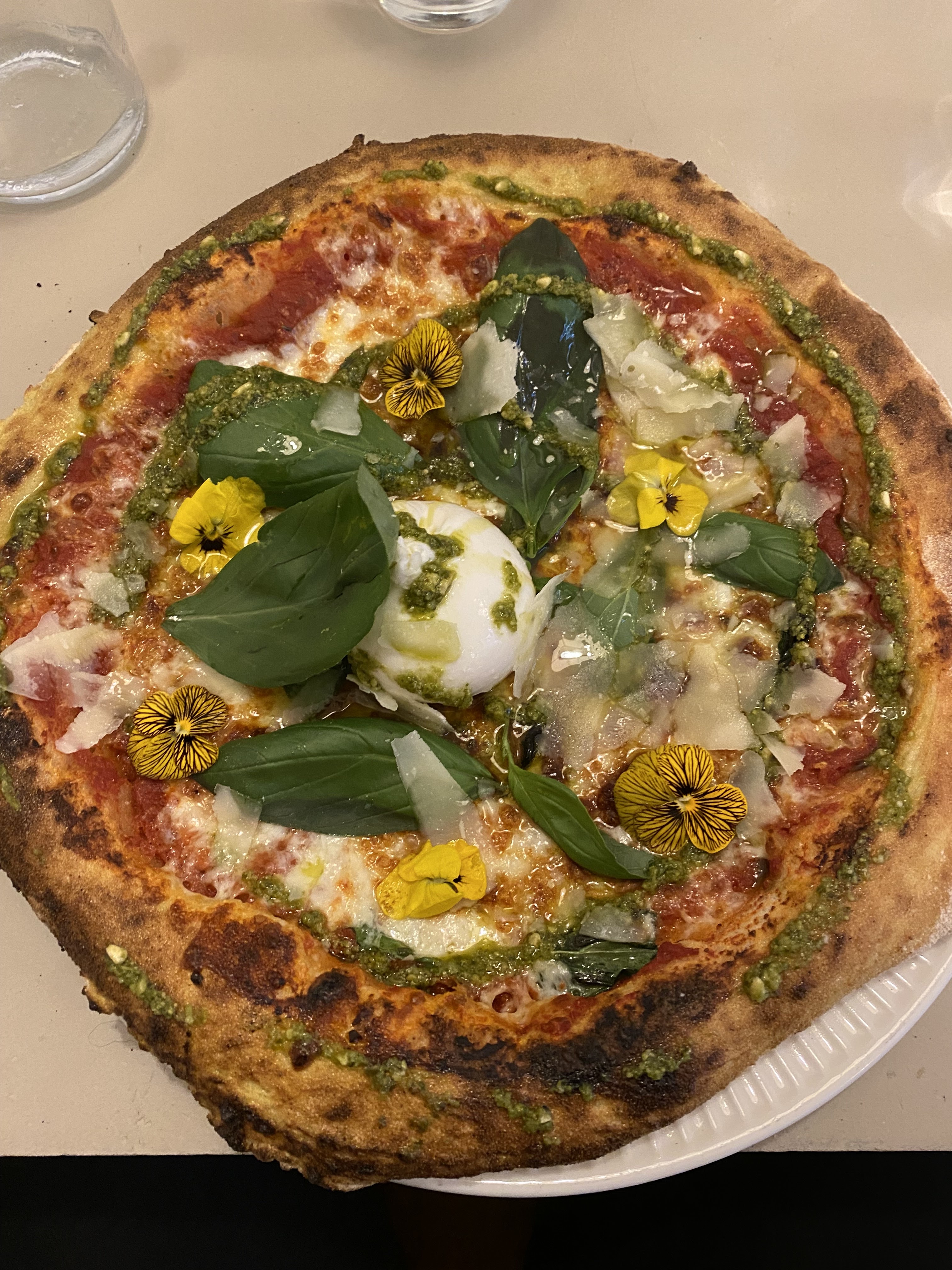 Déjà le cadre est très joli, dans une petite rue du centre, avec un joli patron pour l'entrée. Et ma pizza était délicieuse, avec sa petite boule de burrata. Avec un service sympathique. Bref, je recommande !