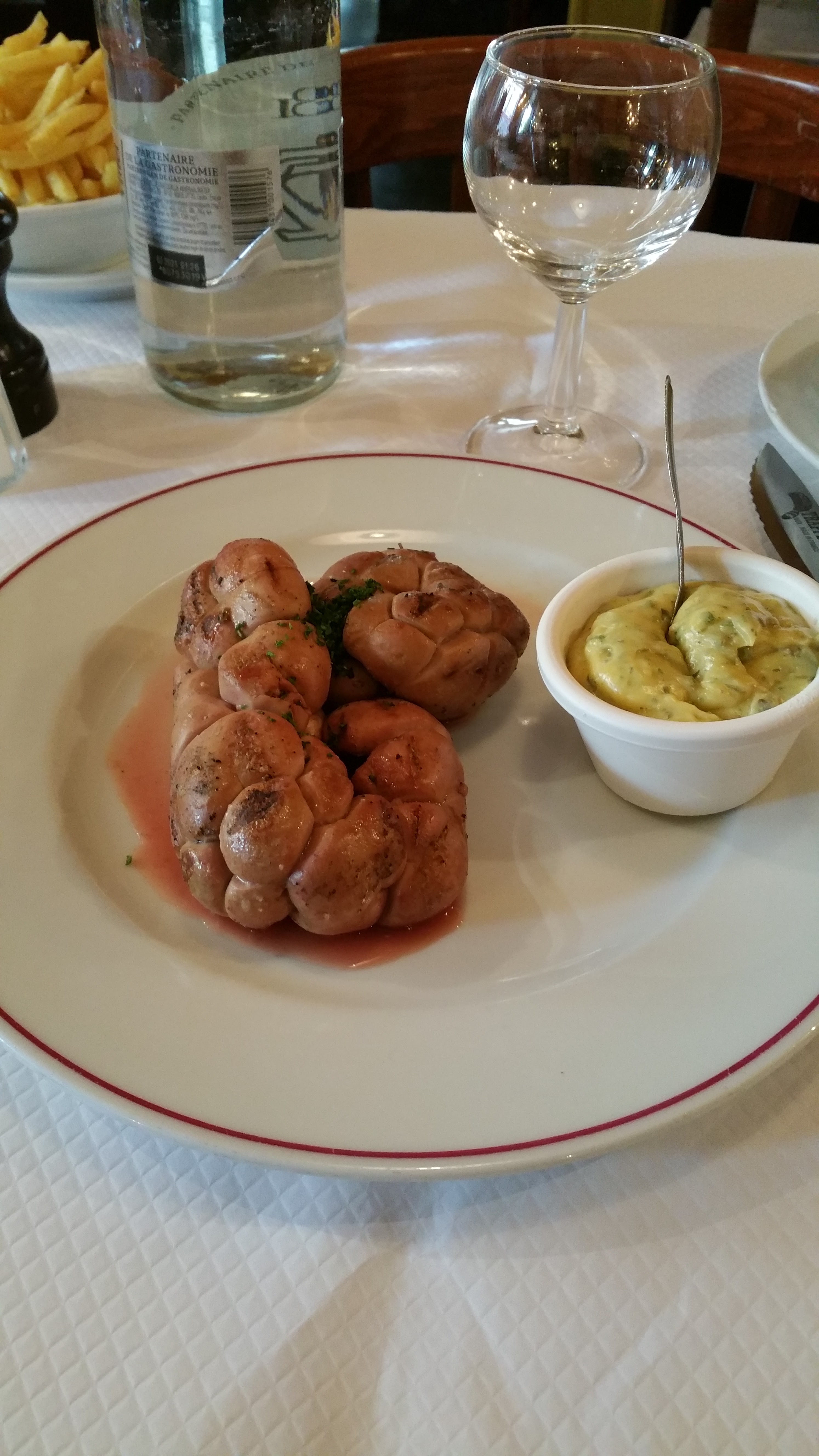 J'ai pris une andouillette qui était bien cuite et très bonne, les frites sont correctes.