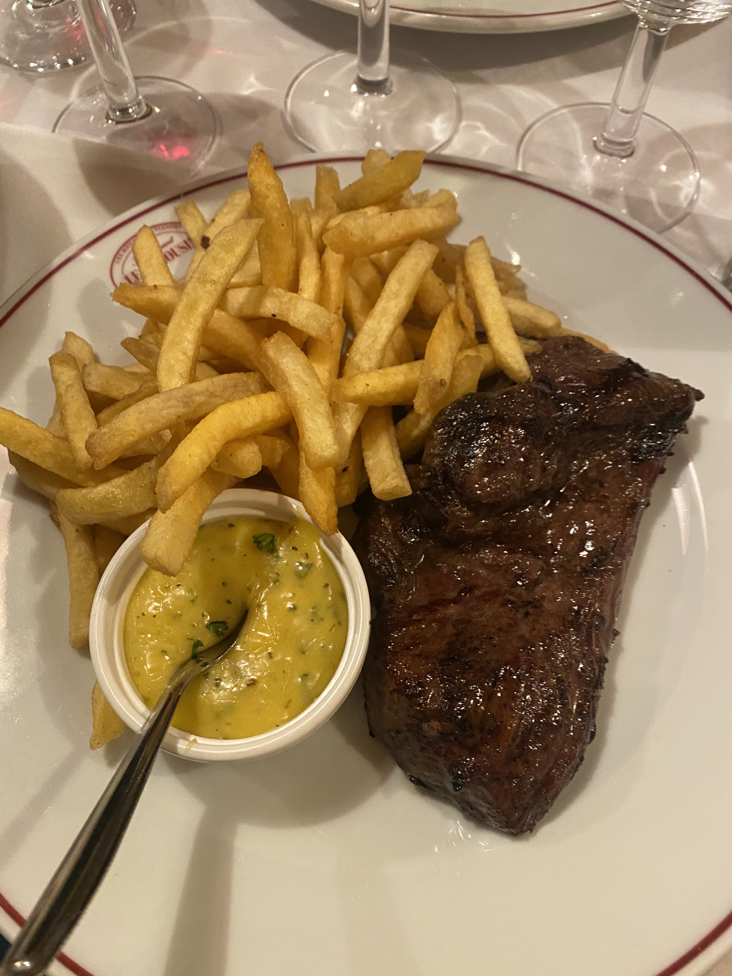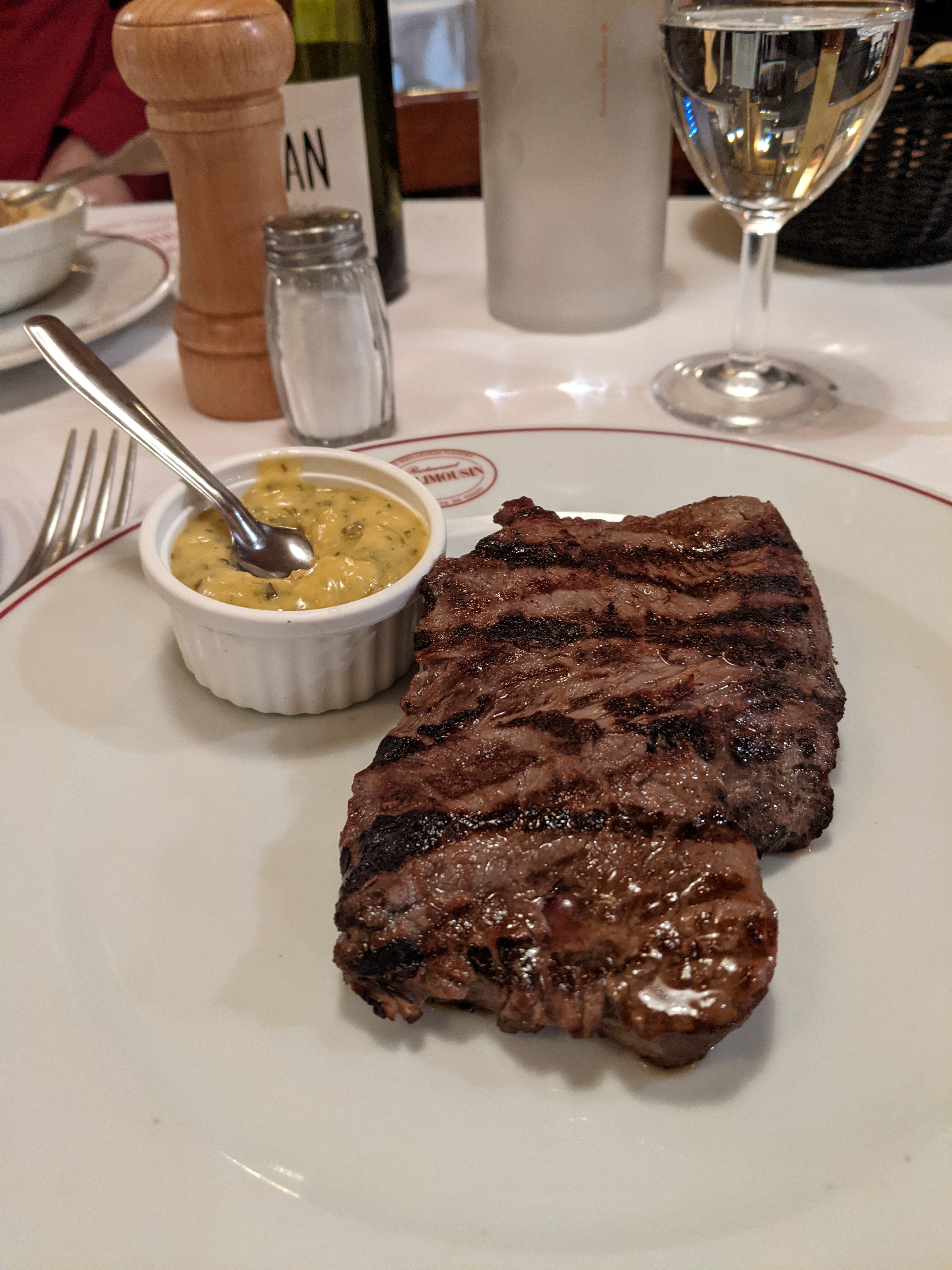 Steak incroyable (sauce au poivre surtout). Même le pain et le beurre ont un goût incroyable. Le service était exceptionnel, remplaçant le pain, l'eau, etc. dès que c'était nécessaire. 10/10, j'y retournerais.