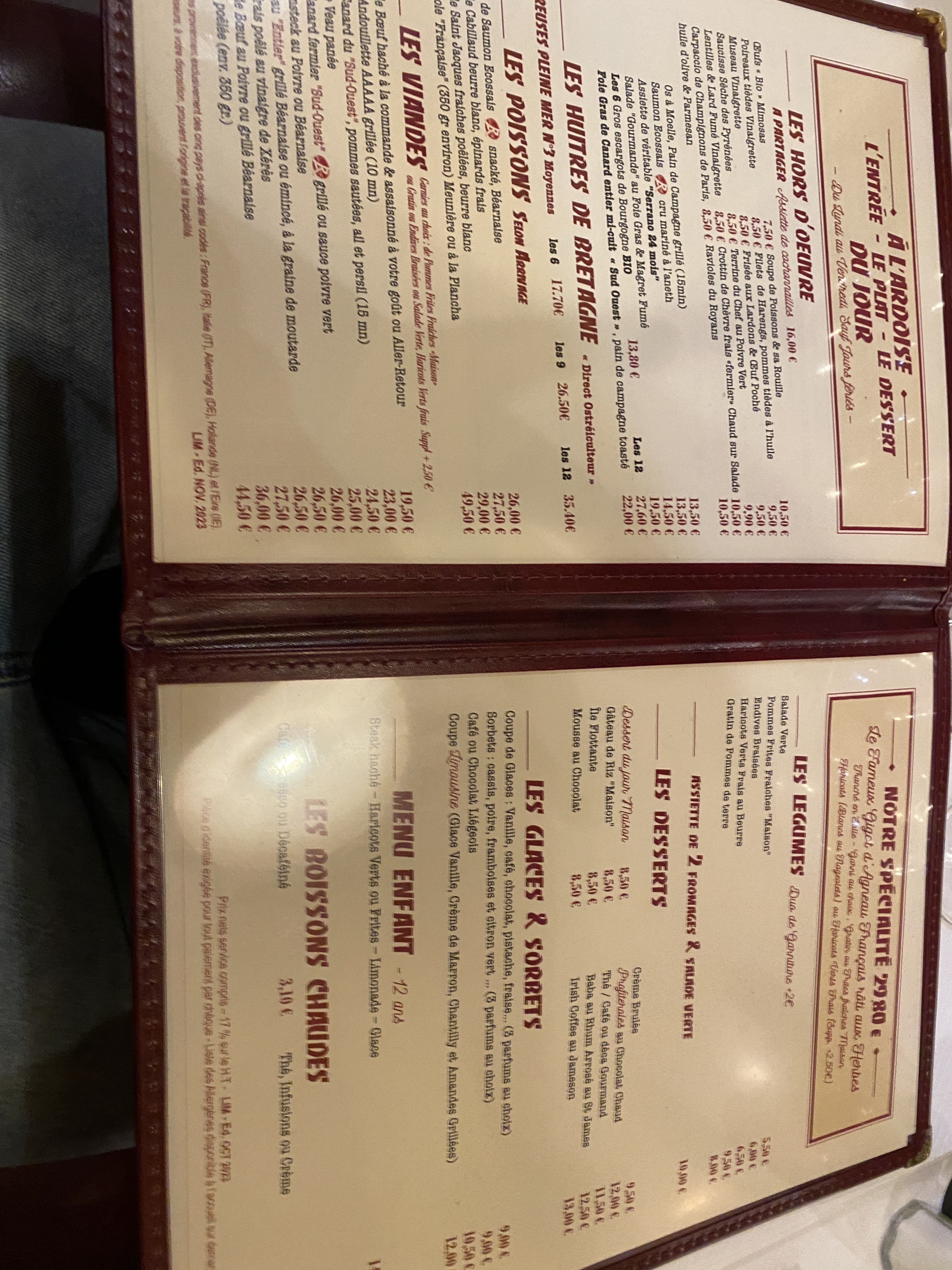 Extrême qualité de l'accueil. La carte de ses grands classique Est conservée.Baba rhum.Gratin Dauphinois délicieux. Cependant la qualité du Gigot m'a semble avoirt un peu baissé Tout en restant acceptable 70 euros 3personnes à ec coupe de champagne