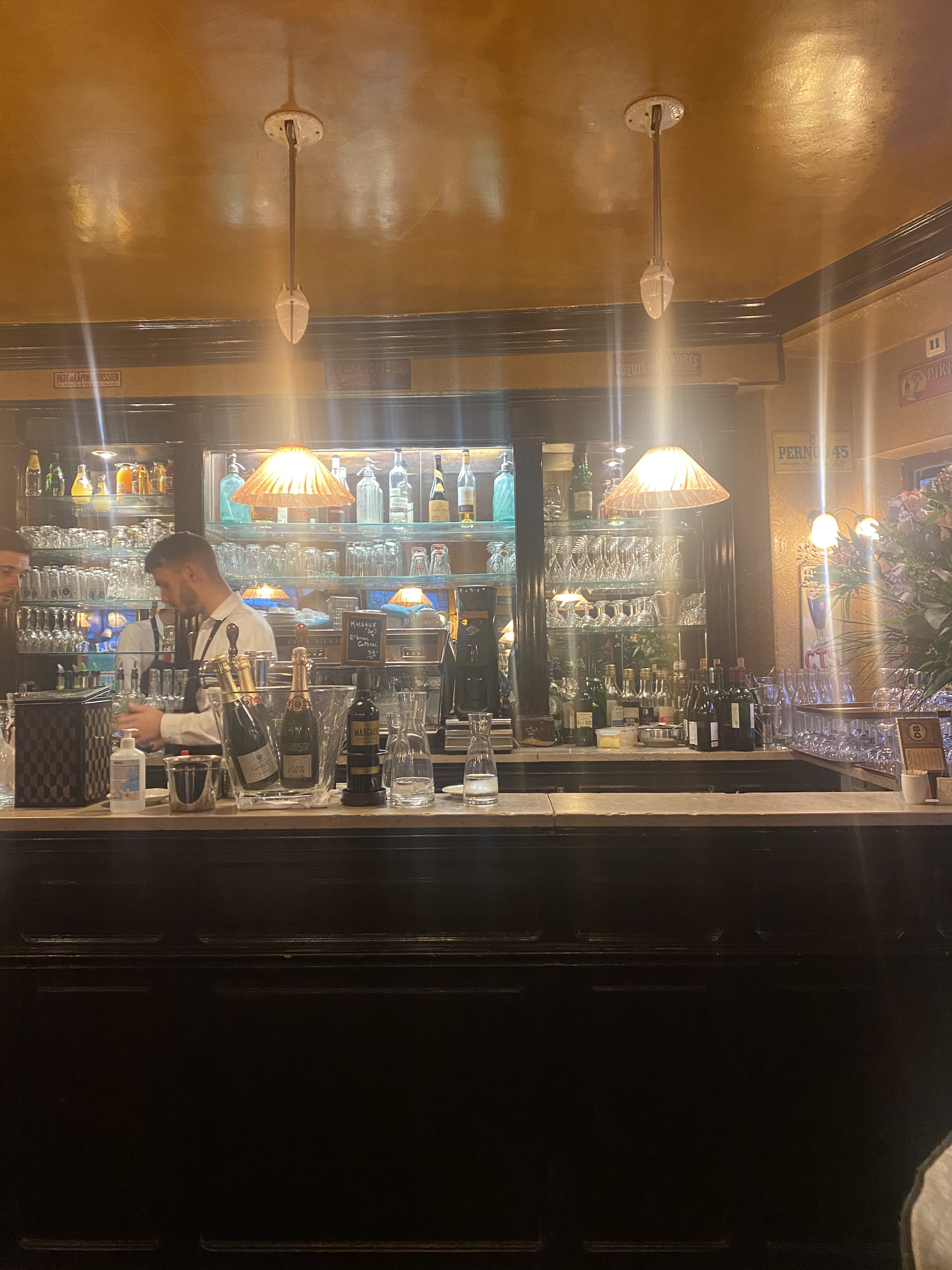 Recommandé par une amie, j'y suis allé les yeux fermés.. Erreur ! J'aurais dû consulter les derniers avis, très mitigés. En entrée, des œufs mimosas trop froids, à peine sortis du frigo. En plat, la spécialité, trois petites tranches du fameux gigot d'agneau juste cuites, avec des flageolets, le tout, pas super chaud mais délicieux quand même. Pour une deuxième tournée … « trop tard, on en a plus à cette heure là » La moindre des choses aurait été de prévenir avant la commande... à 29,50€ le plat.. J'en ai fait la remarque au chef de rang, qui en était juste désolé.. Un service juste correct, le personnel qui raconte sa vie au comptoir, fin de service, le patron est peut être absent.