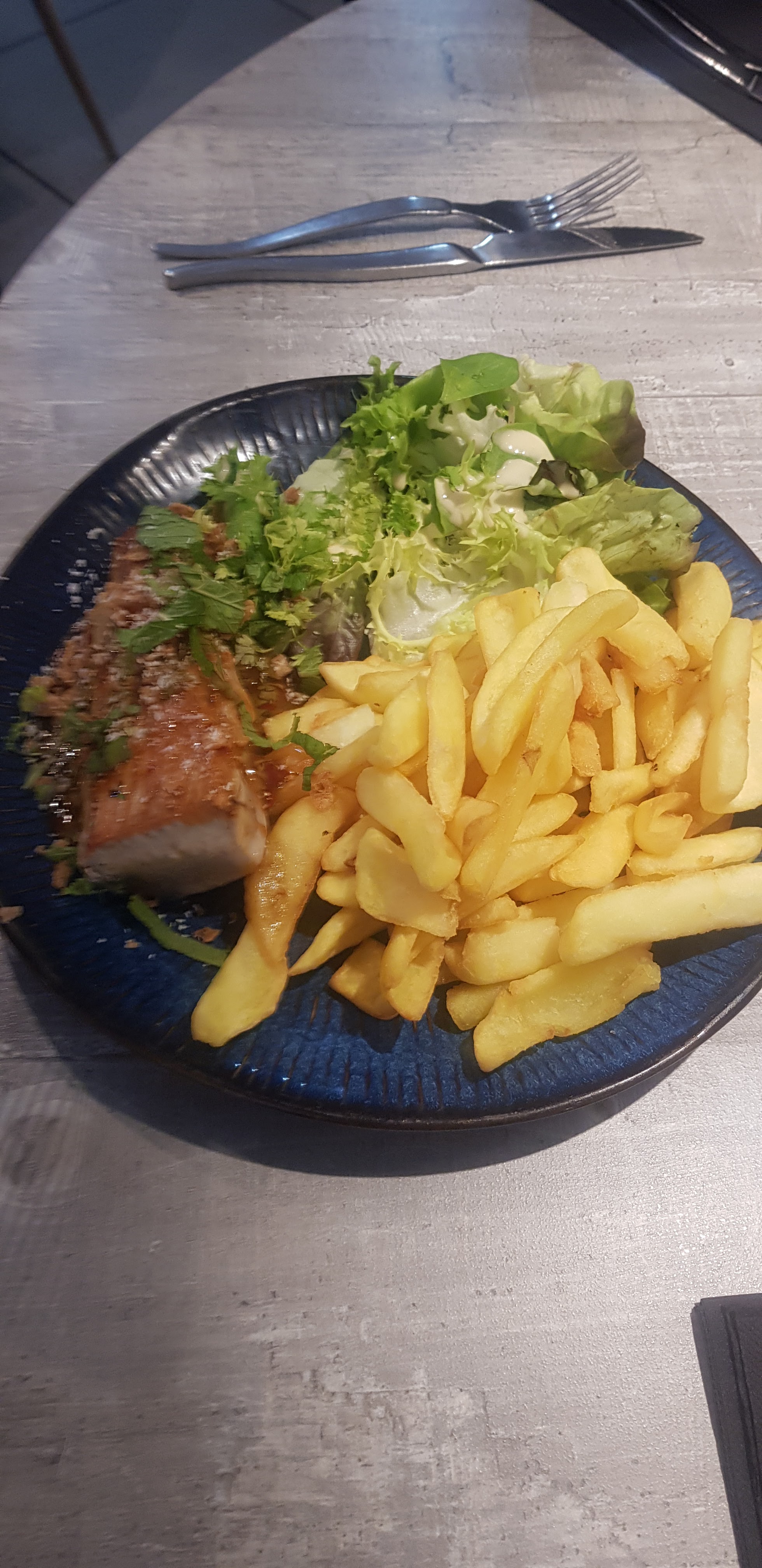 Nous n'avions pas passé commande et le service à emporter a quand même été rapide. Nous avons été agréablement reçus. Le repas était très bon, très copieux, le poisson en quantité. Je recommande vivement. Merci à vous, continuez ainsi !!