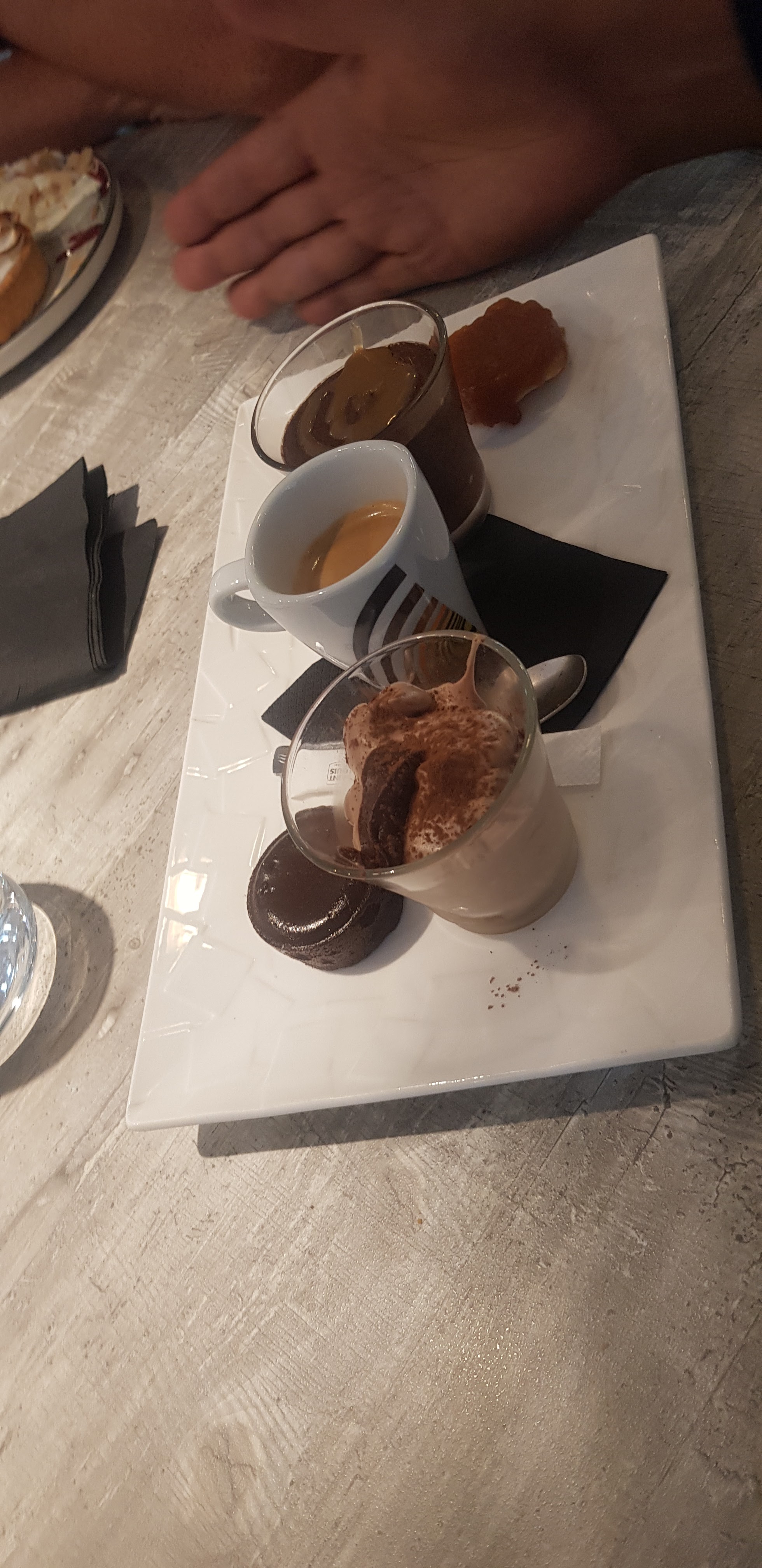 Plat du jour excellent . Nous avons déjeuné sur la terrasse. Le café gourmand était copieux . Nous reviendrons car étant pris par le temps 1h15 pour déjeuner nous avions demandé un service rapide ce qui a été respecté