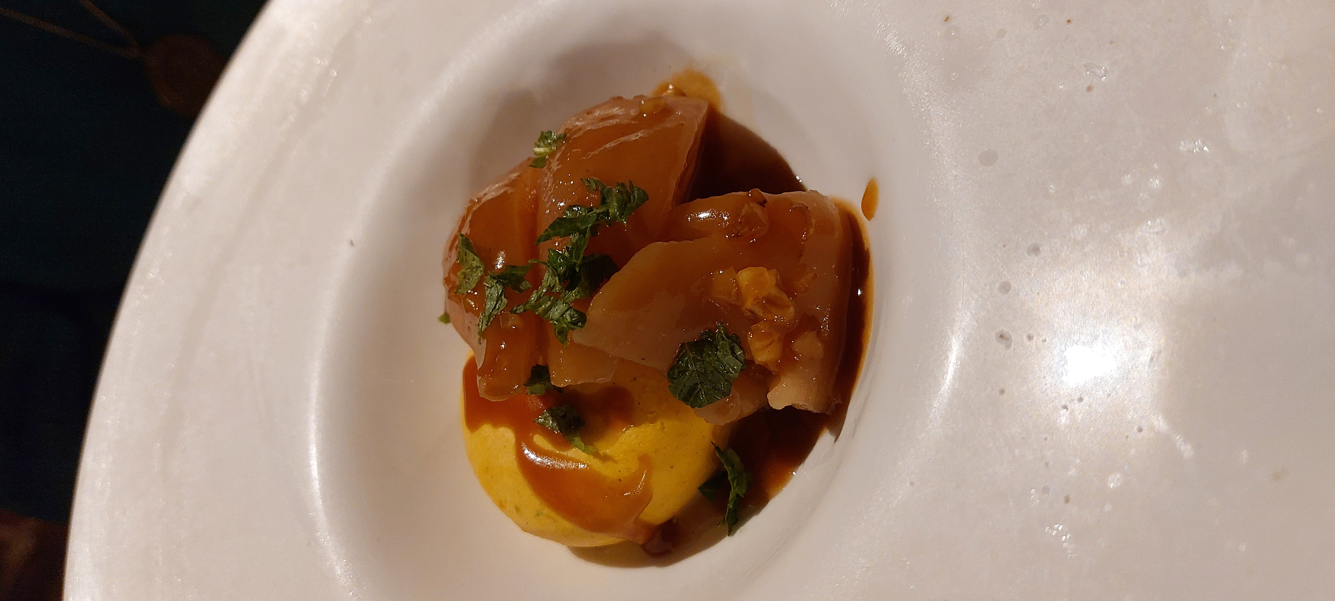 Très bon moment, tant d'un point de vue gustatif que du service. Bon timing entre les plats, belle présentation et surtout une bonne préparation (quantité, qualité). Le petit plus très apprécié : les amuse-bouche n'étant pas à notre gout, le serveur nous en a proposé d'autres sans que nous demandions. Il n'était évidemment pas obligé ! L'ambiance était également calme et posée (seules 6 tables ce soir là, en est-il de même avec le restaurant plein ? en tout cas nous avons apprécié) Endroit à recommander.