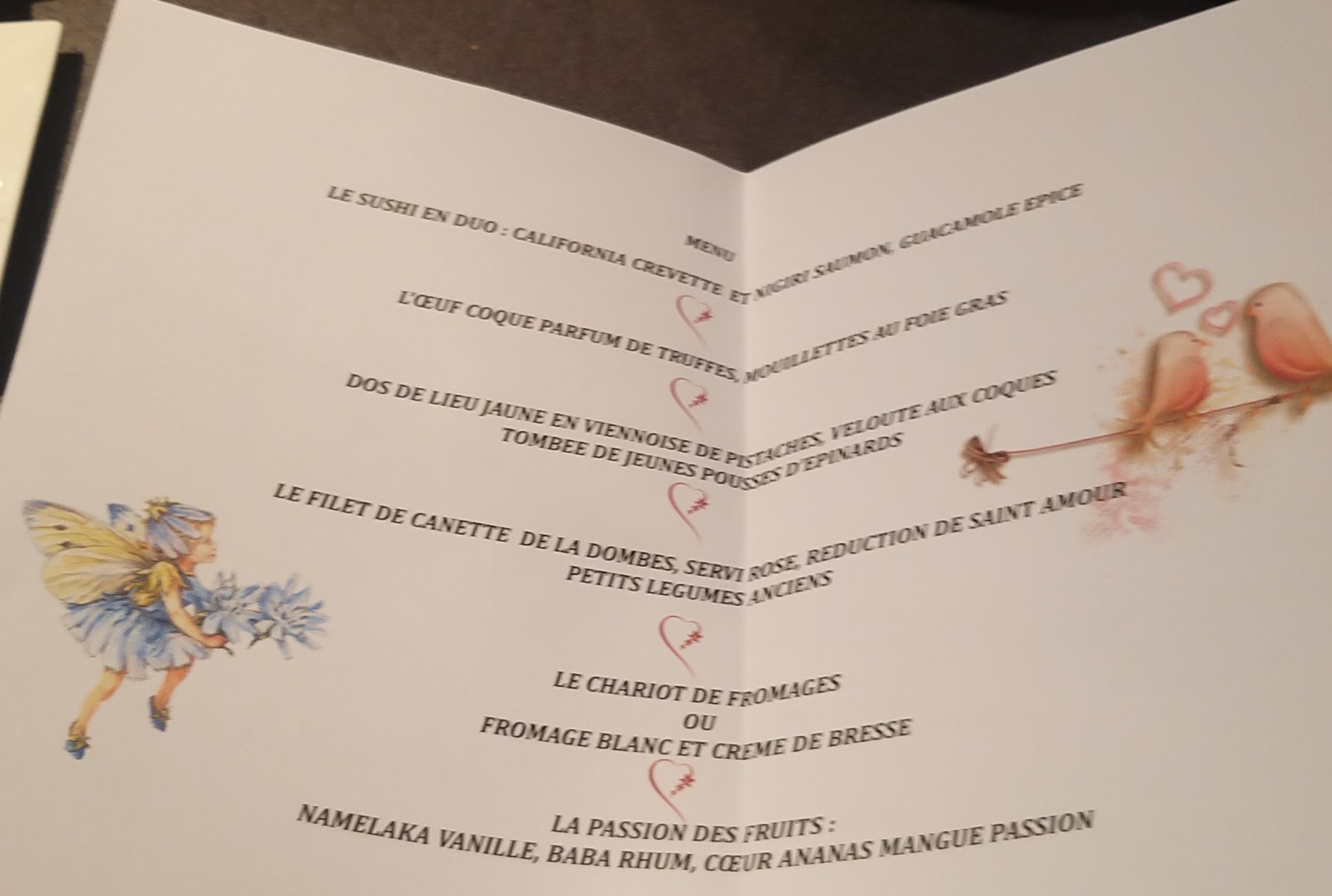 un menu de saint Valentin Exceptionnel . des mets et des saveurs raffinées et copieux, un service avec des gens souriants, une carte des vins sérieuse, a prix attractifs. Le meilleur rapport qualité prix de la région. Sièges confortables. ici le principal est dans l'assiette, un restaurant c'est cela avant tout.