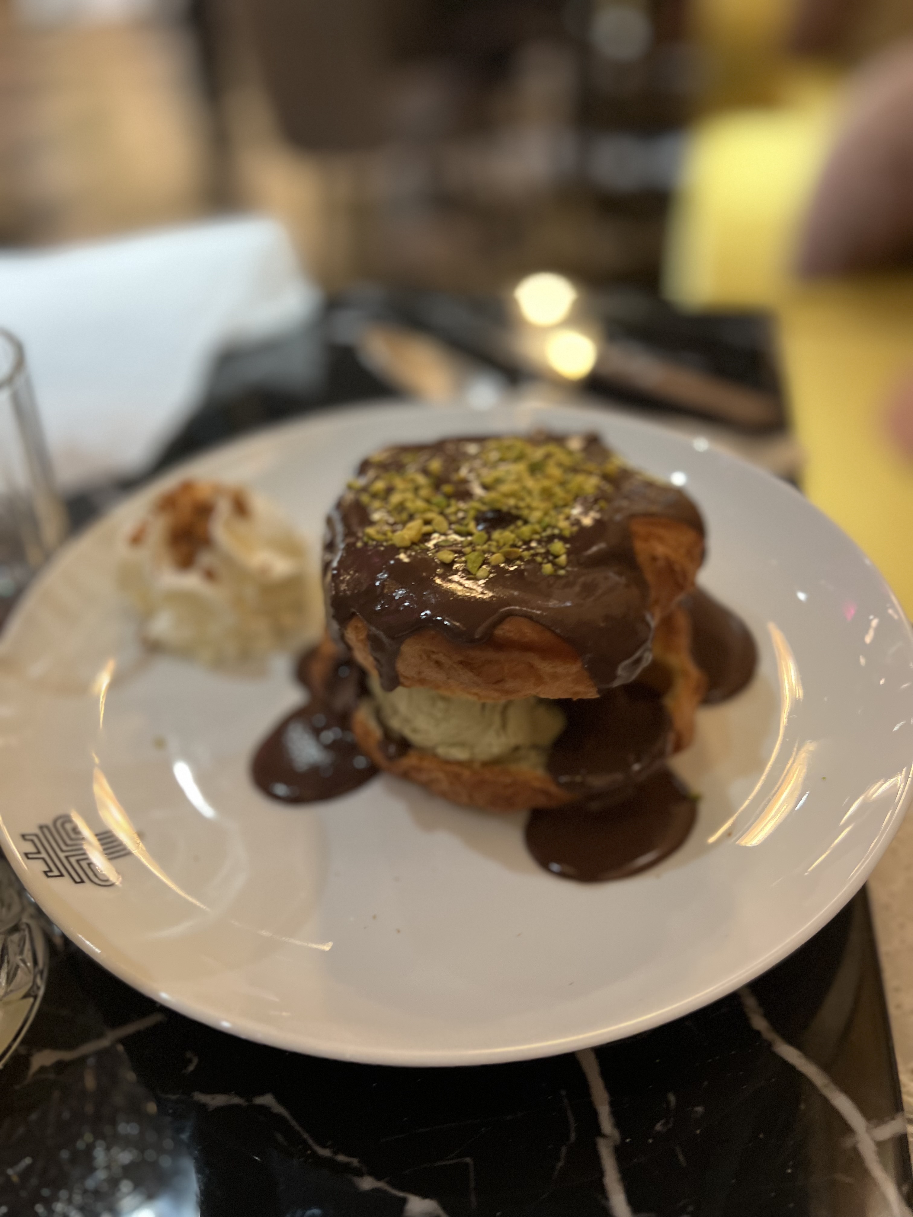 Service au top! Rapide et efficace ! Arancini subtil et le goût de la truffe et léger mais présent. La pizza au pesto de pistache est incroyable ! Si vous aimez les cheesecakes légèrement acide et une bonne crème de pistache foncé ! À faire!