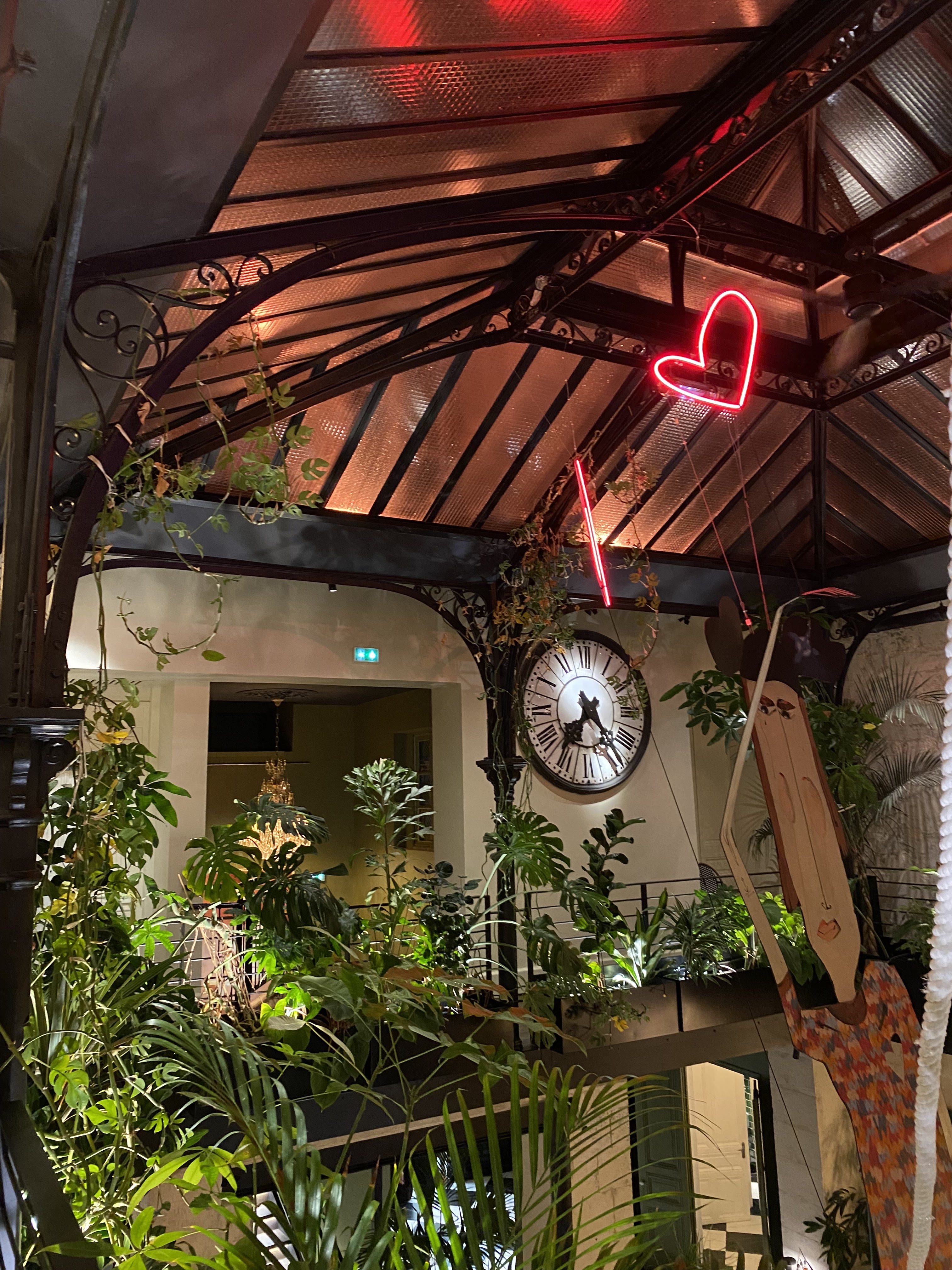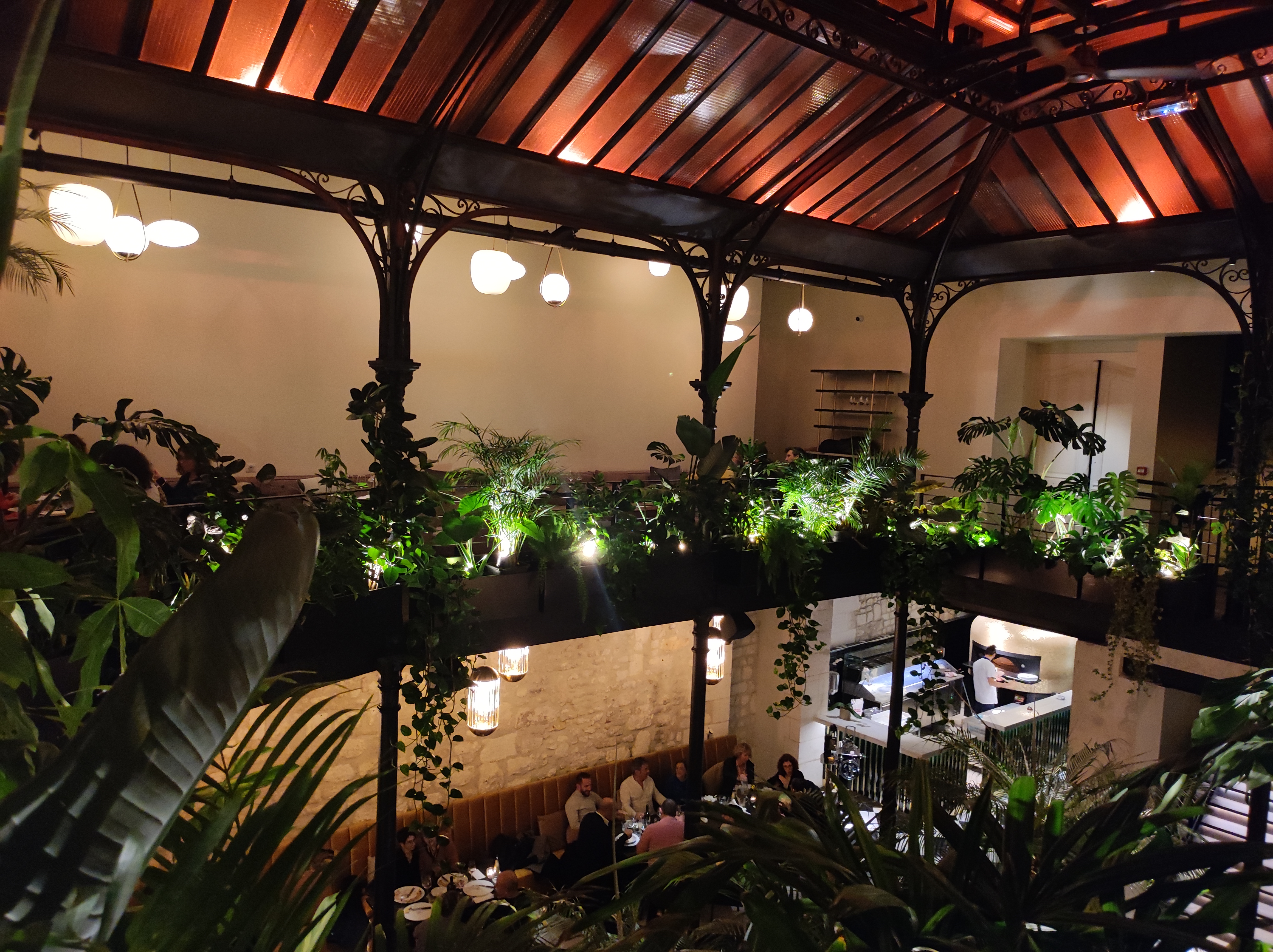 Le décor est magnifique ! Très original, on ne sait où regarder ! Des plantes, des créations artistiques, à l étage, une mezzanine plongeant sur la salle d en bas, un puit de lumière par une belle verrière Très bon accueil, service rapide, et cuisine savoureuse à l accent italien, une très bonne soirée