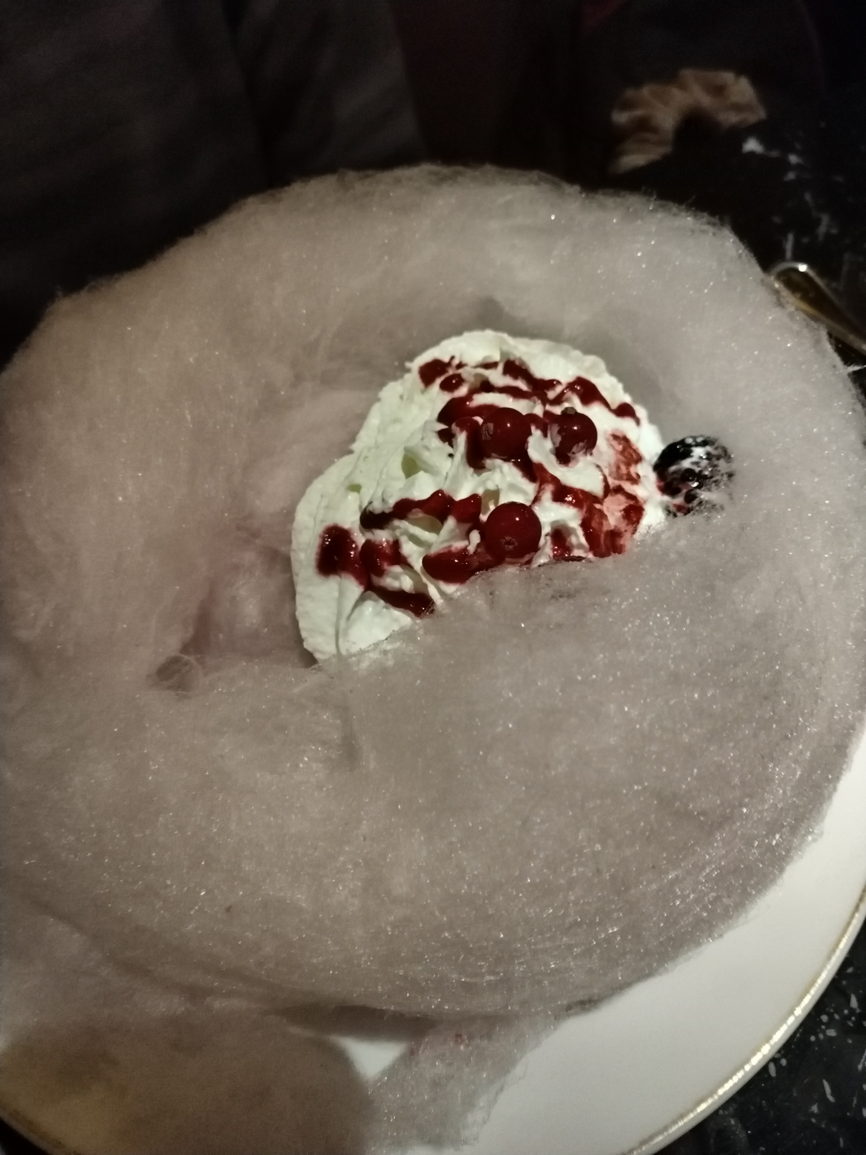 Déco sympa. Vacherin framboise était copieux et bon 😋. Le plat du jour c était des pâtes avec klk bouts de poulet, 😕!
