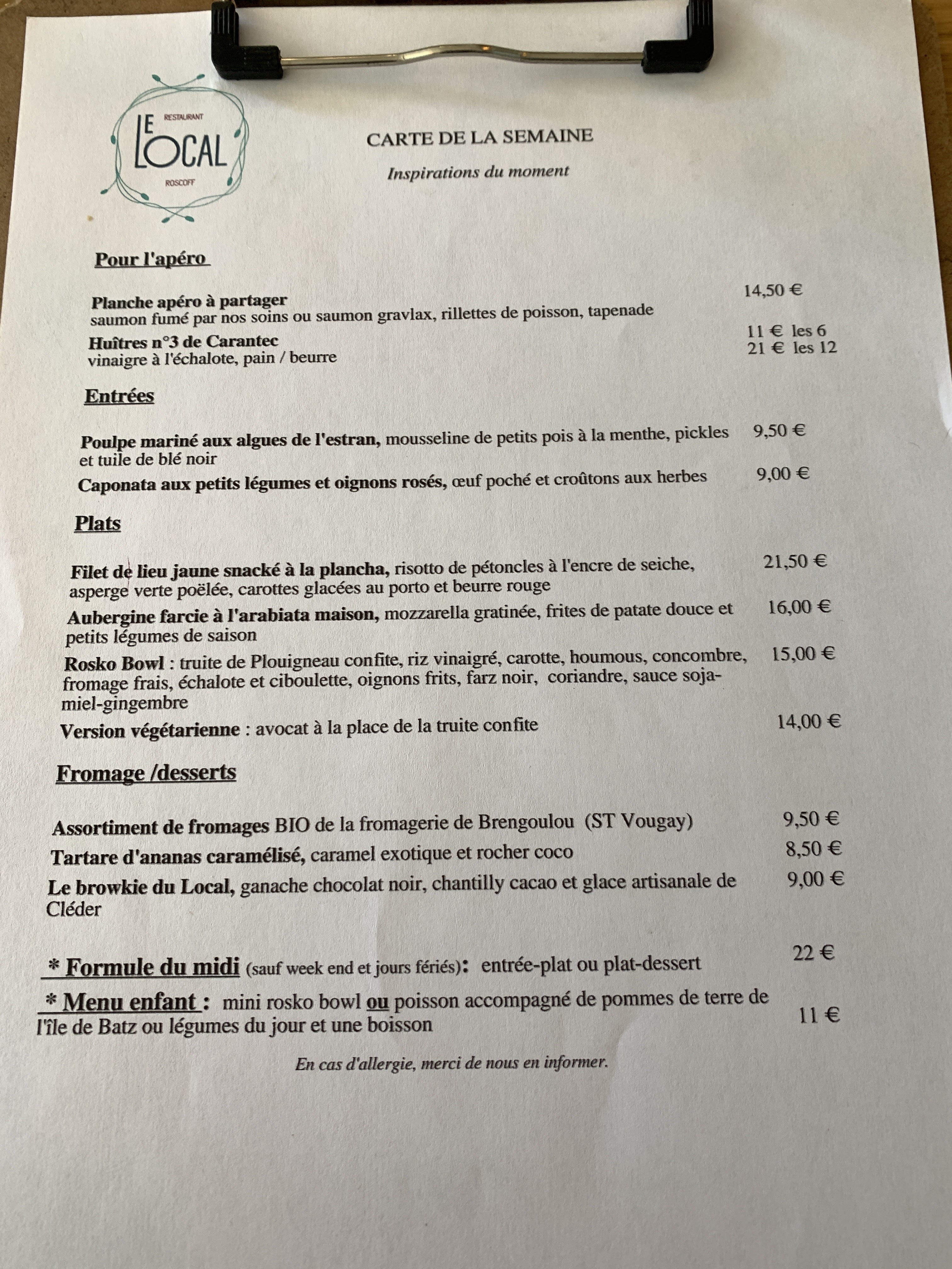 Une carte qui change toutes les semaines. Des plats colorés aux saveurs bretonnes. Un régal !!!