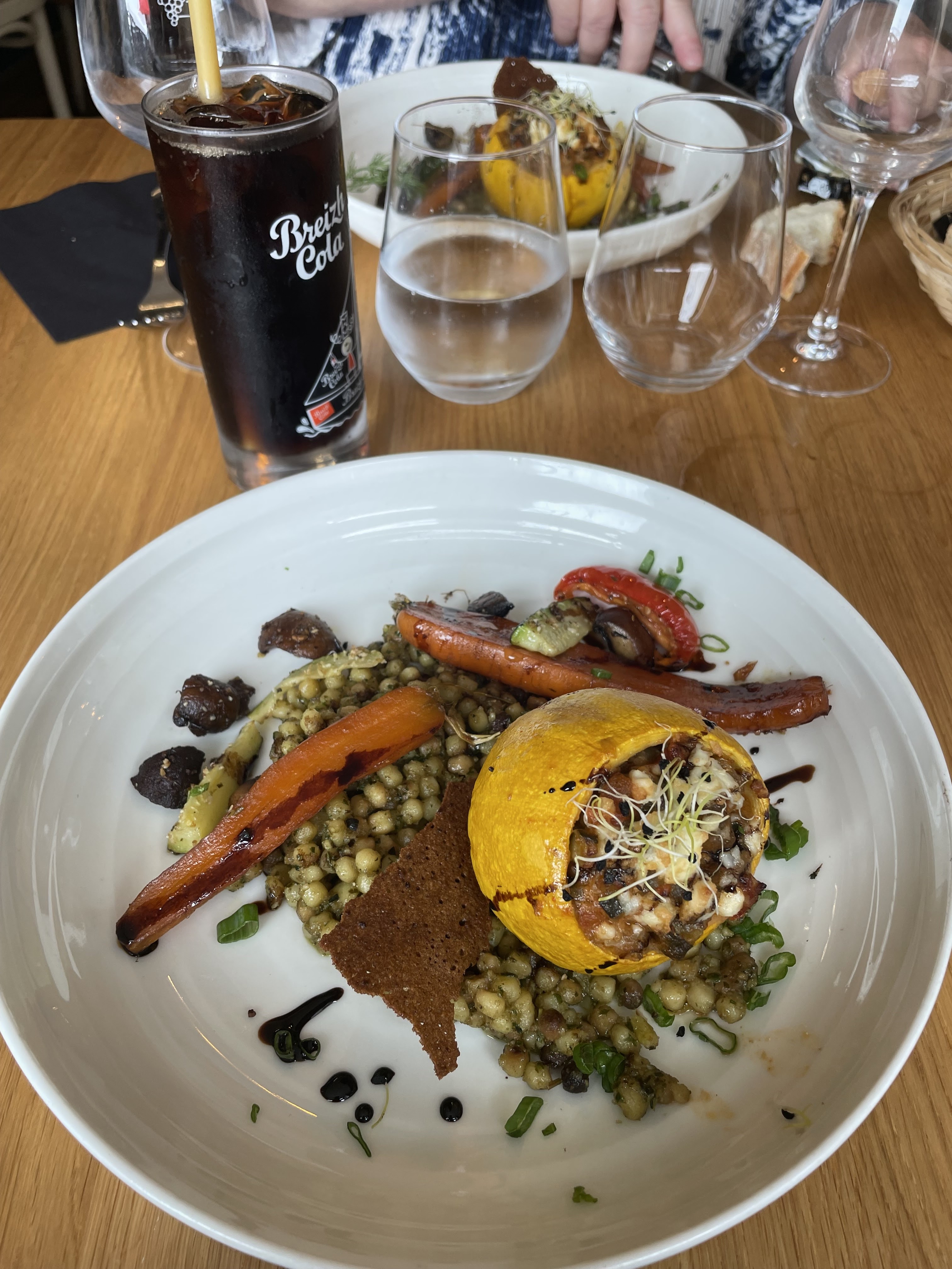 Parfait. Coté végétarien des saveurs qui sortent de l'ordinaire pour un bugeur et un veggie bol (plats classic qui ne nous surprennent habituellement plus) cette fois oui! Les plats sont cuisnés avec une touche particulière. Merci