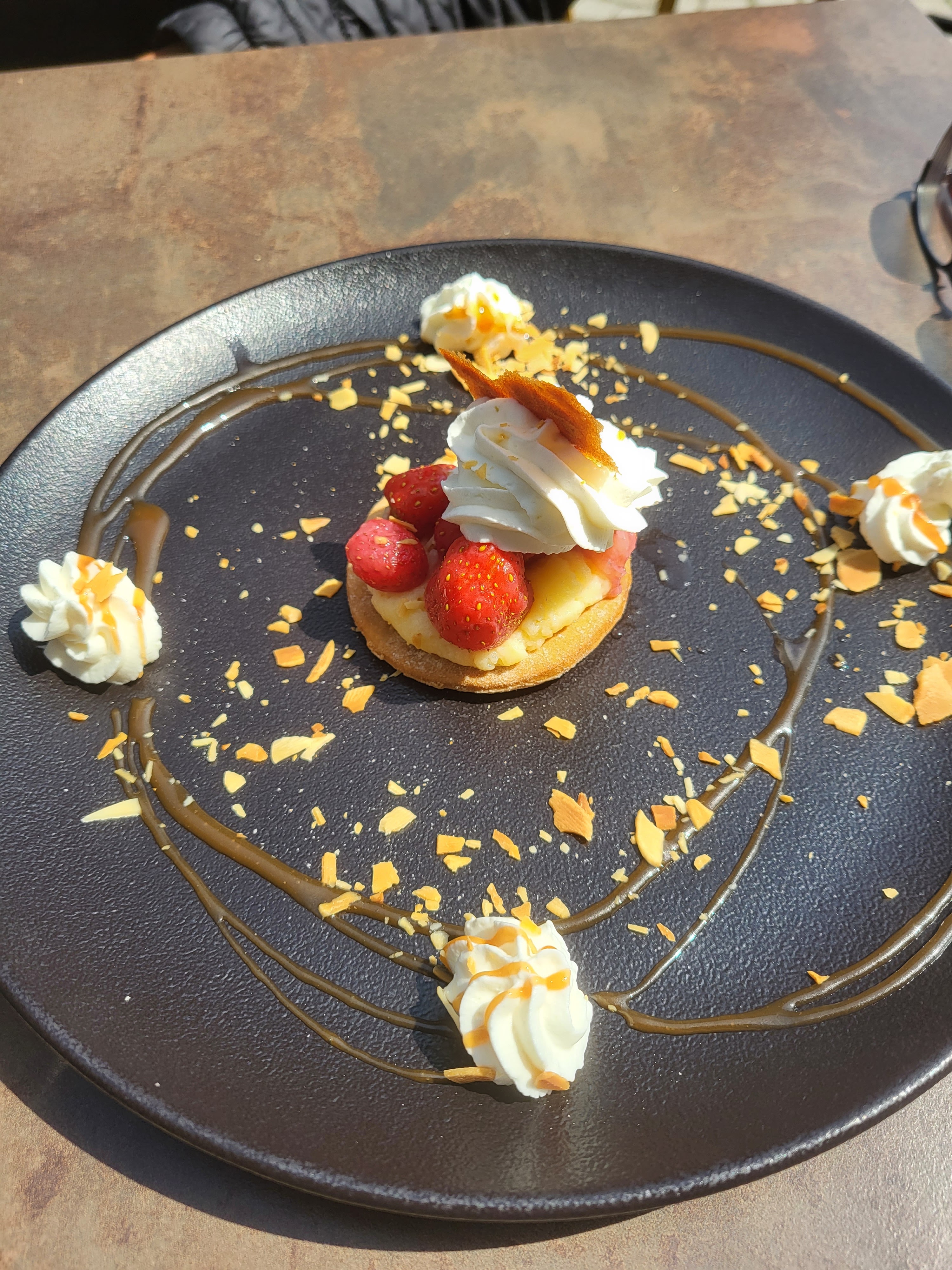 Plats aussi beaux que bons et accueil très sympa.... ne vous arrêtez surtout pas au salé, les desserts sont divins.