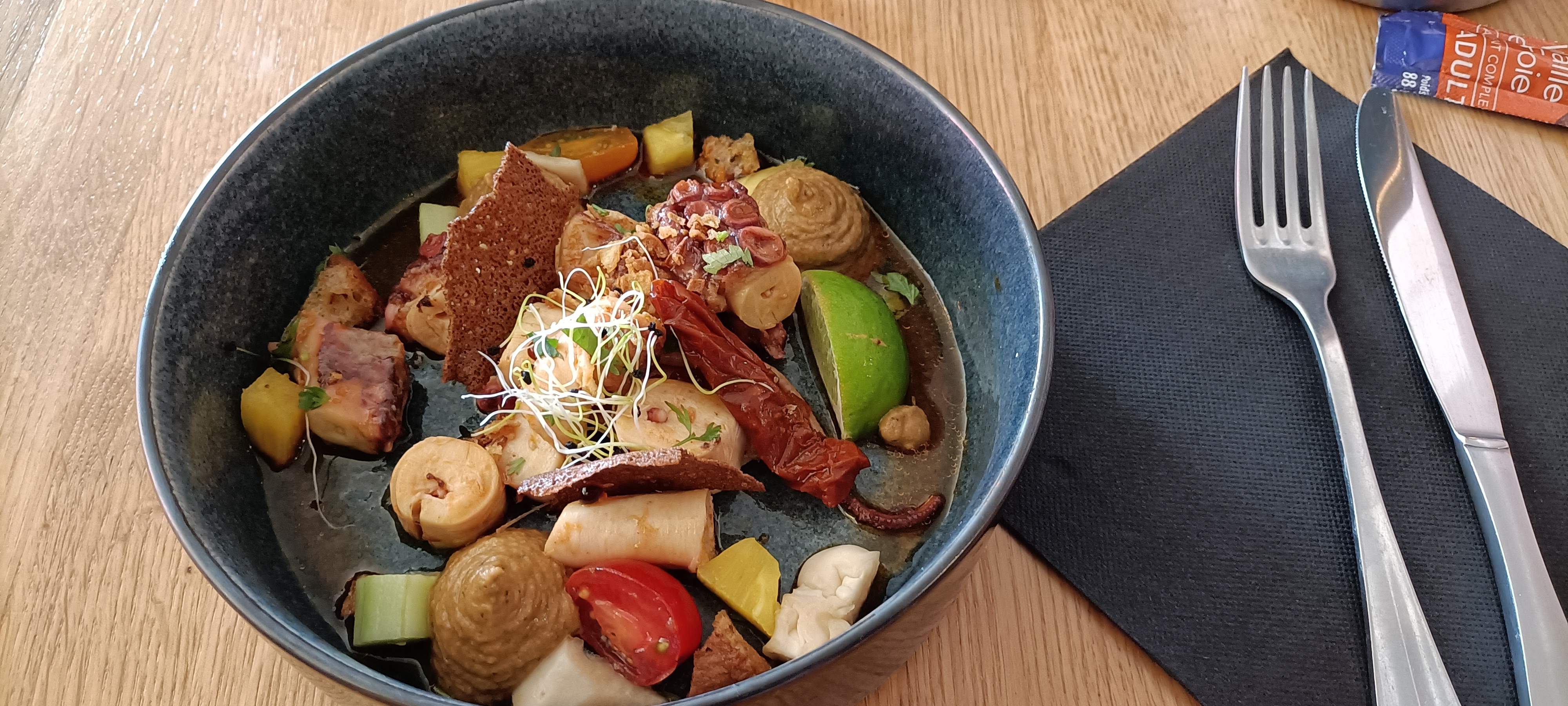 Un endroit à découvrir. Même si la carte n'est pas très fournie et le choix un peu limité, les entrées, les plats et les desserts sont originaux, bien présentés et très bons. Je me suis régalé avec le poulpe grillé et ses légumes locaux, un plat qu'on ne déguste pas si souvent.
