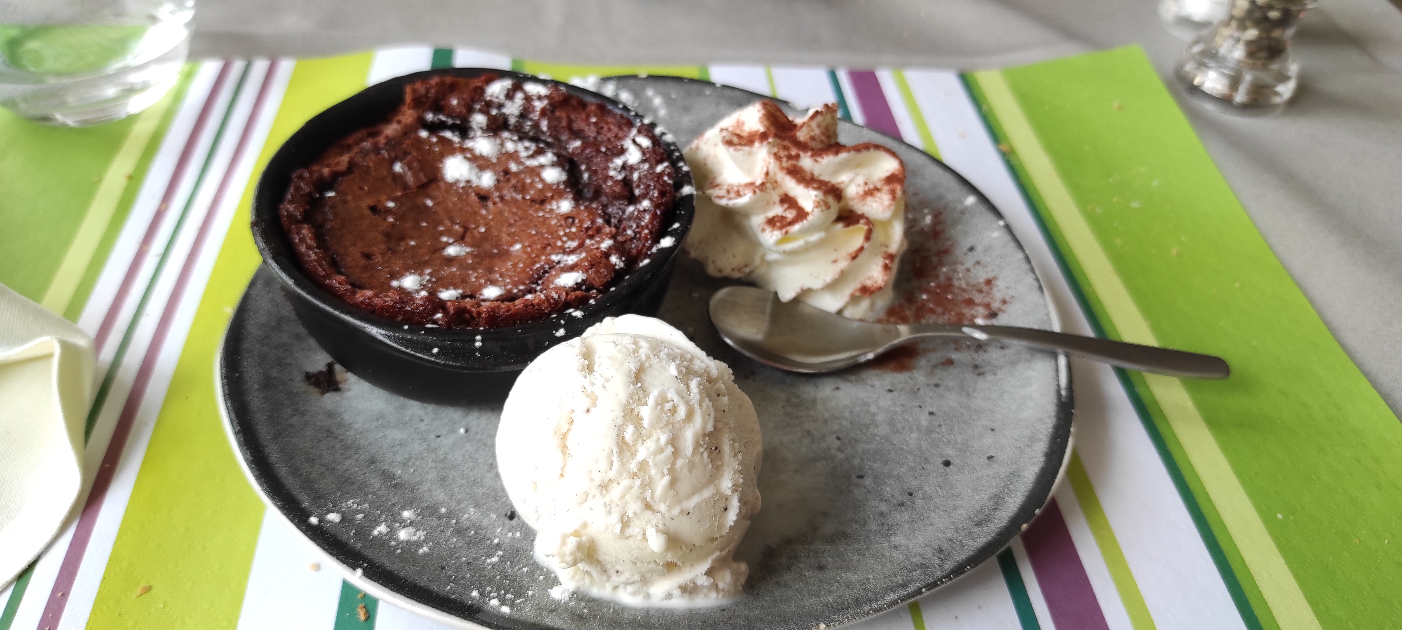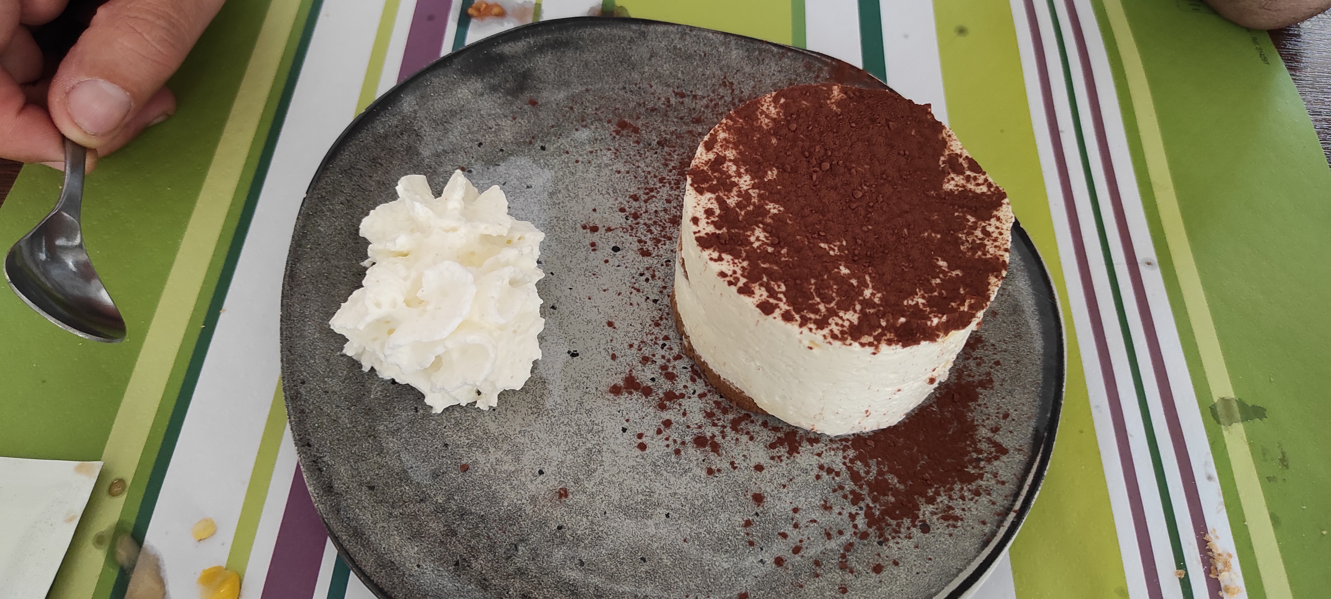 Prix correct, cadre agréable, reposant, service dynamique et avec le sourire.très bon repas, sans oublier les desserts surtout le tiramisu au Nutella fondant onctueux😋.